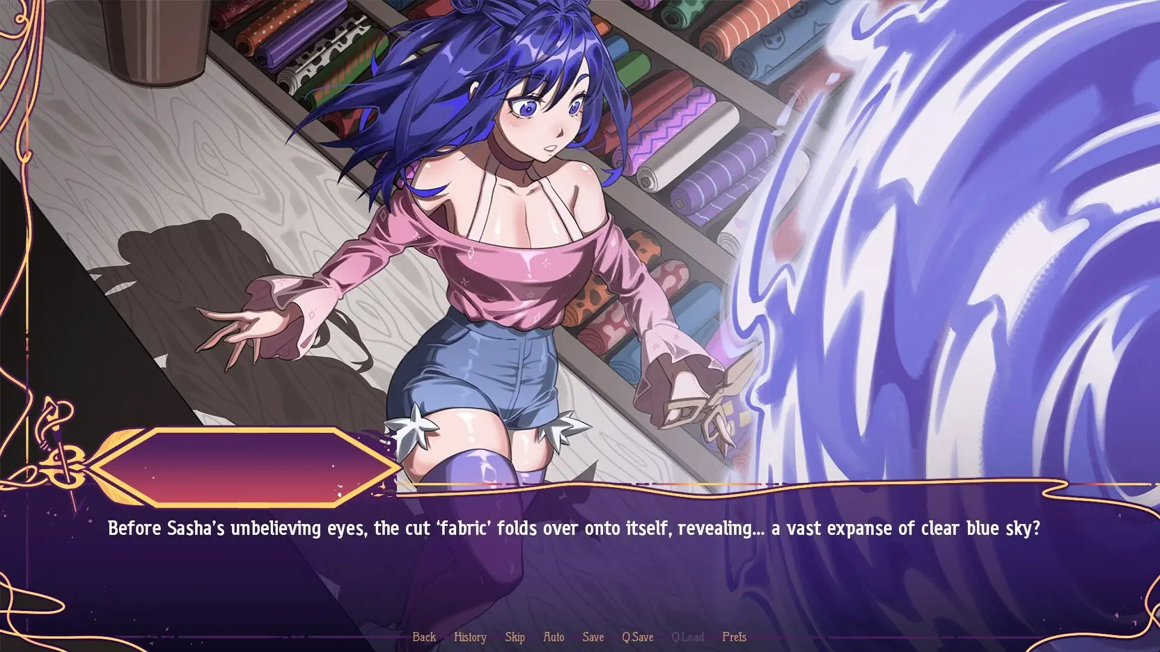 Sasha is a spunky internet streamer who finds herself transported to a fantasy kingdom where lewd acts are forbidden. Armed with a set of magical, curse-breaking scissors, Sasha must cut away the shackles of repression and lead a sexual revolution to save the world!