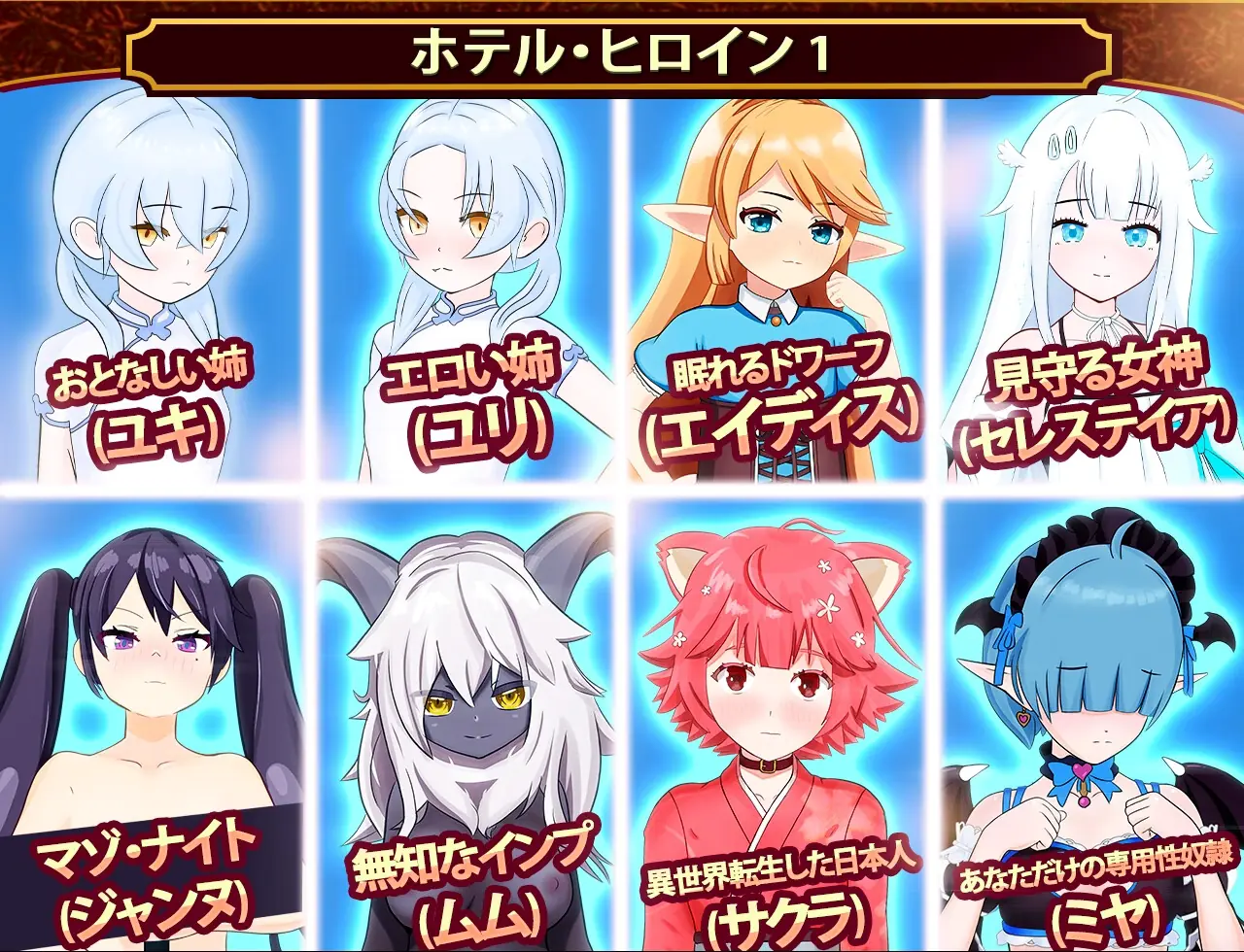 About The Game: My Isekai Hotel ~ Build a Hotel and Create Your Own Harem is a porn game made on Unity game engine. This game is rated M and meant for adults with explicit contents and strong language. It is advised to read the tags to get an idea about the game. The current available version is v.My Isekai Hotel ~ Build a Hotel and Create Your Own Harem. THe contents of the game is Uncensored. My Isekai Hotel ~ Build a Hotel and Create Your Own Harem is developed and distributed by Witch Pantsu, Please support Witch Pantsu if want the development of My Isekai Hotel ~ Build a Hotel and Create Your Own Harem game going or want to see more new games from them in future. The download links are crawled and gathered from various public sites. We do not host/modify or alter the contents. The uploader is responsible for the DMCA.