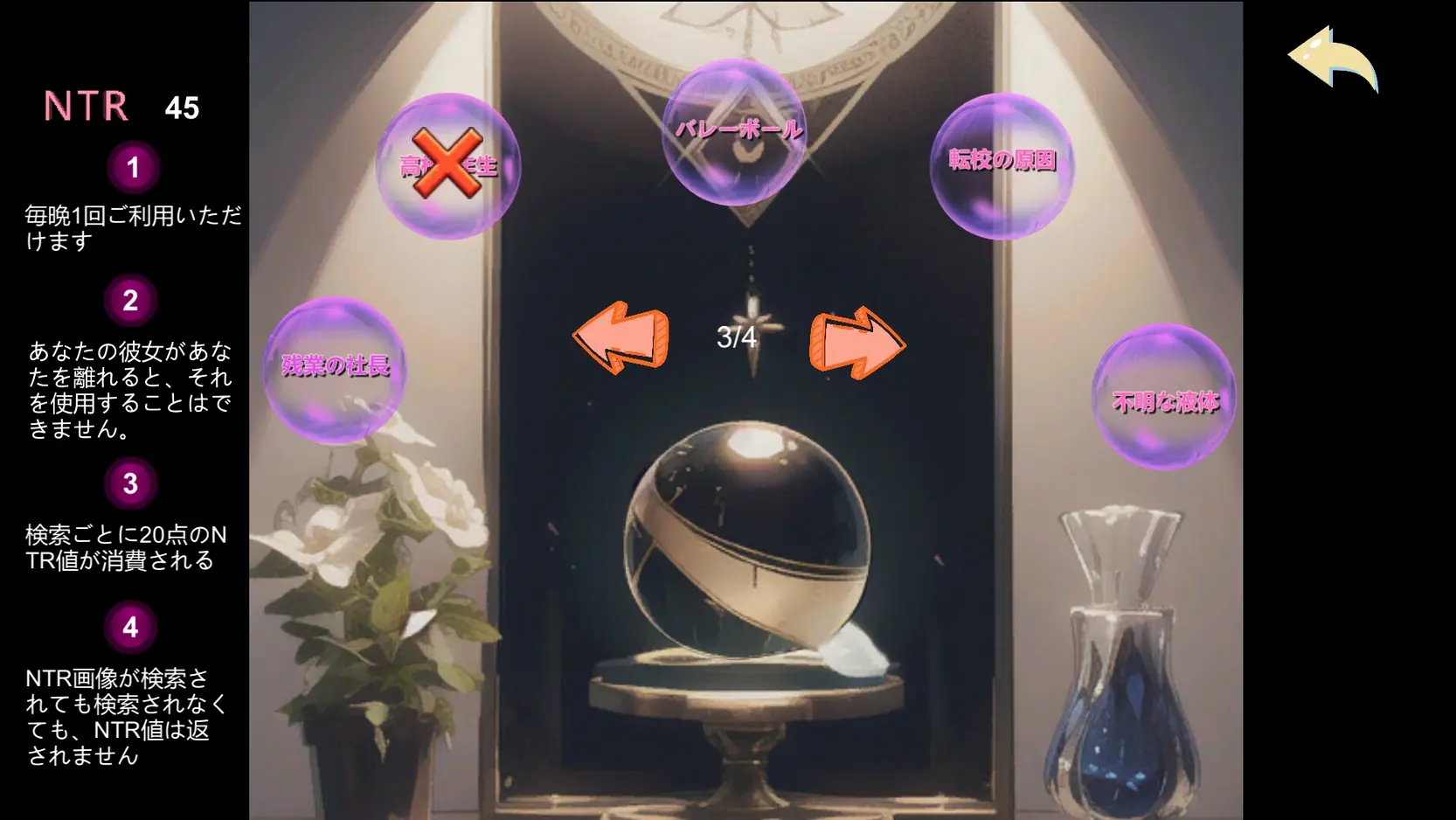 This is a 18+ love reasoning investigation game.The game controls the protagonist’s movement through the arrow keys on the keyboard, and interacts with the characters and objects in the scene through the space bar.