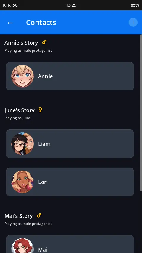 There are many playable stories with 8 planned and each story will have a host of characters. The stories consists of a mix of Male and Female Protagonist characters!​