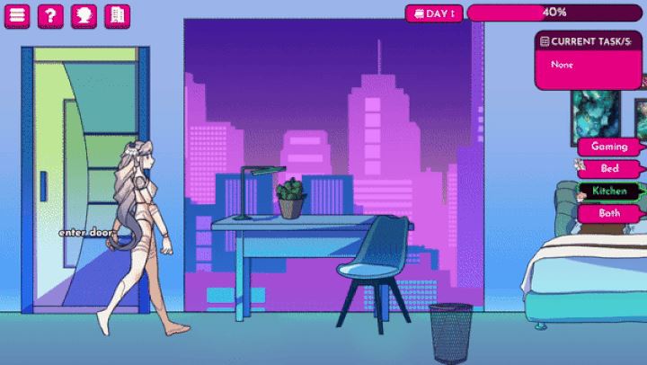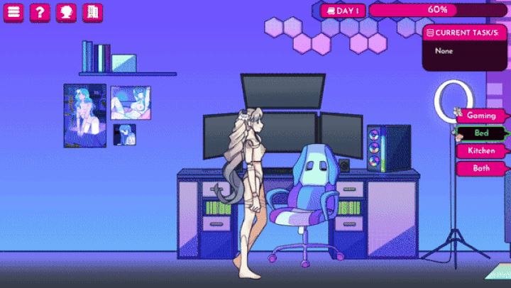 NEURA: Neon Fantasy is a unique simulation game where your goal is to reach the "satisfaction" of your "client" to 100%.Your client's satisfaction increases after successful lewd scenes, which occurs on two different triggers: