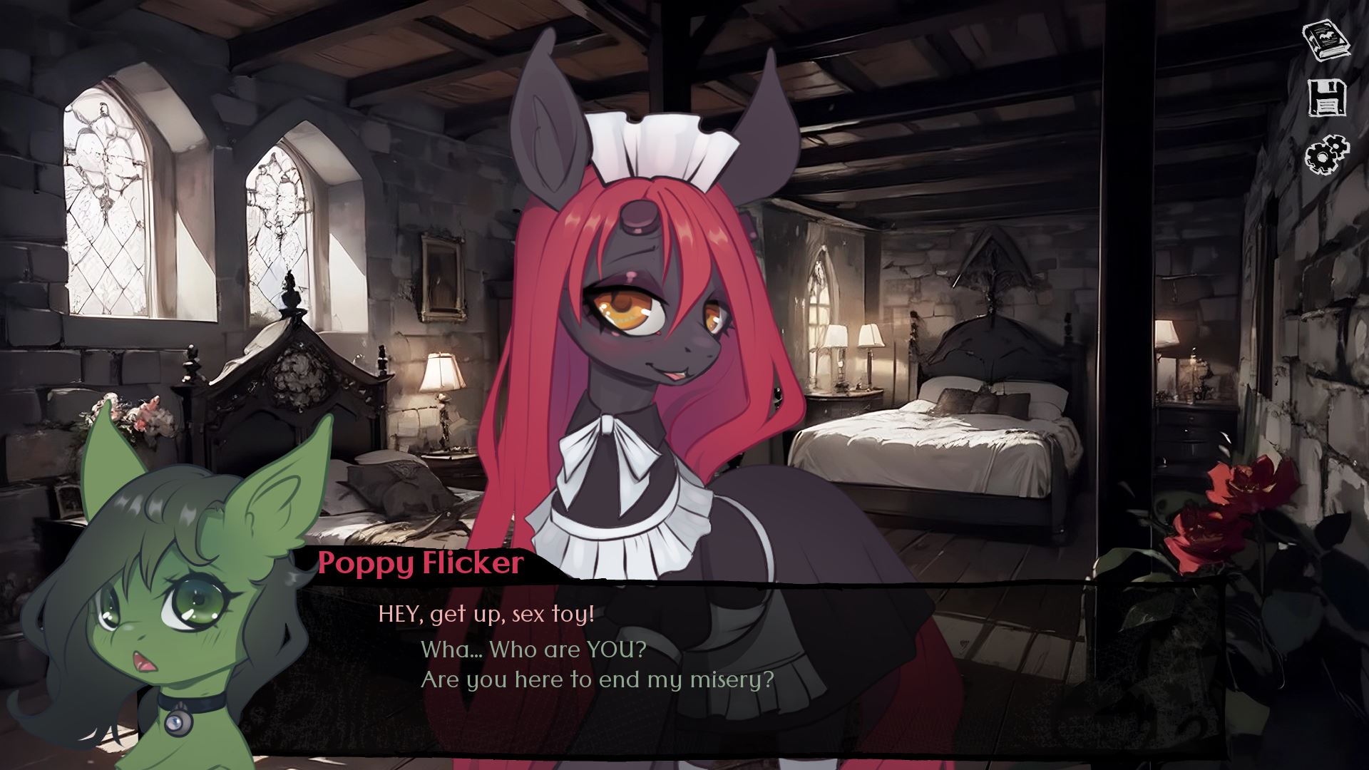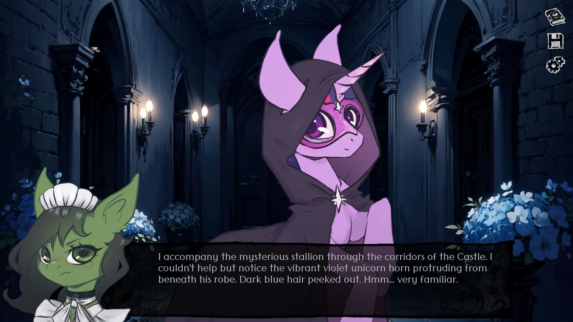 Welcome to NIGHT HAZE CASTLE, a kinky visual novel about an unfortunate pony running from debts and stumbling upon a mysterious castle and it’s cunning mistress – Lunar Lace. Choices matter