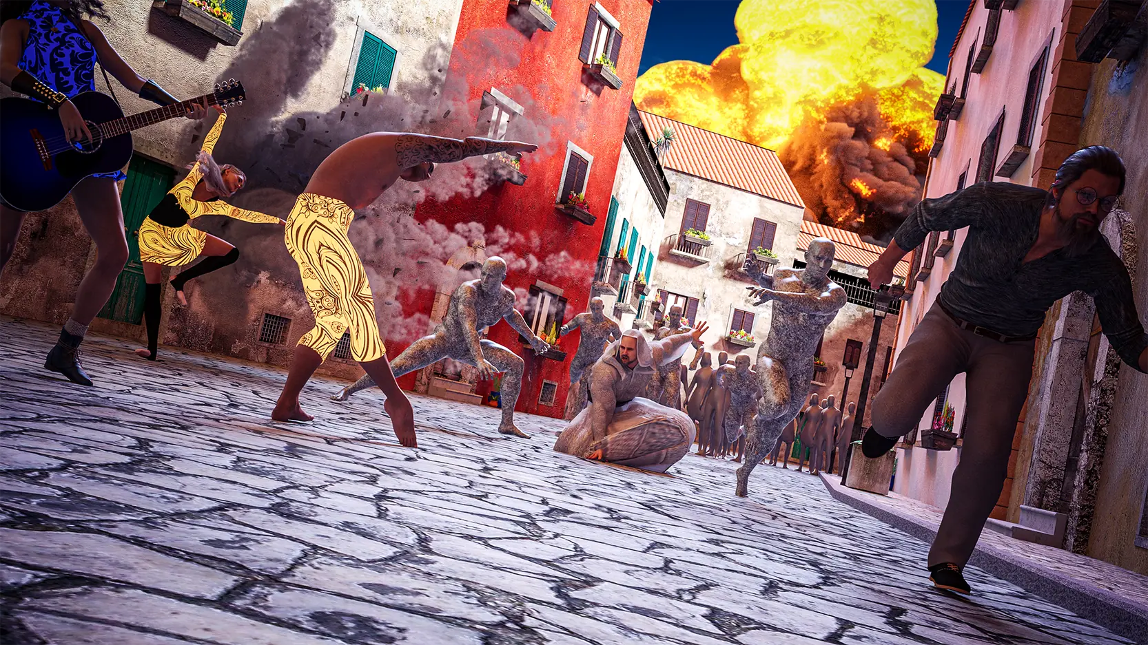 A man runs from living statues—intent on tearing him apart—haunted by his lost memory. From a painting, a dancer named Callie steps into reality. With every graceful stride, she shatters the statues and pulls him into another world. In Surreal, art is magic: people become their costumes, writing predicts the future, and music can reveal memories.