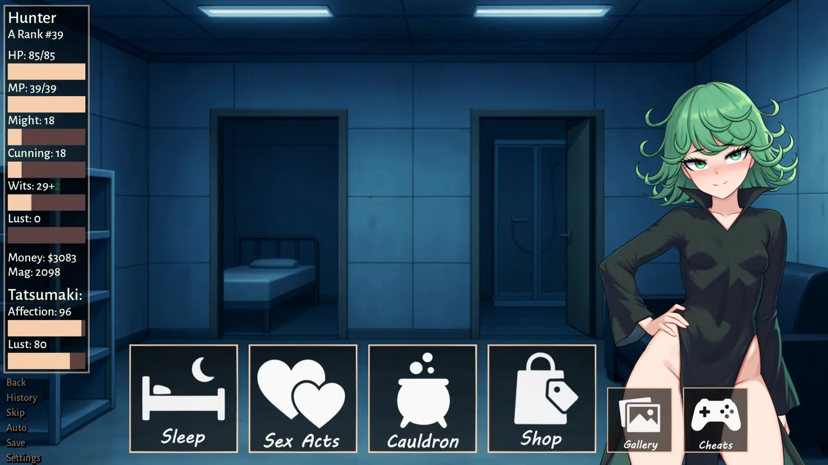 One Pump Chump is a lewd parody Visual Novel with RPG elements, set in a world of powerful heroines, horny monster girls, and hero rankings. Train, flirt, survive… and try not to blow it too early.