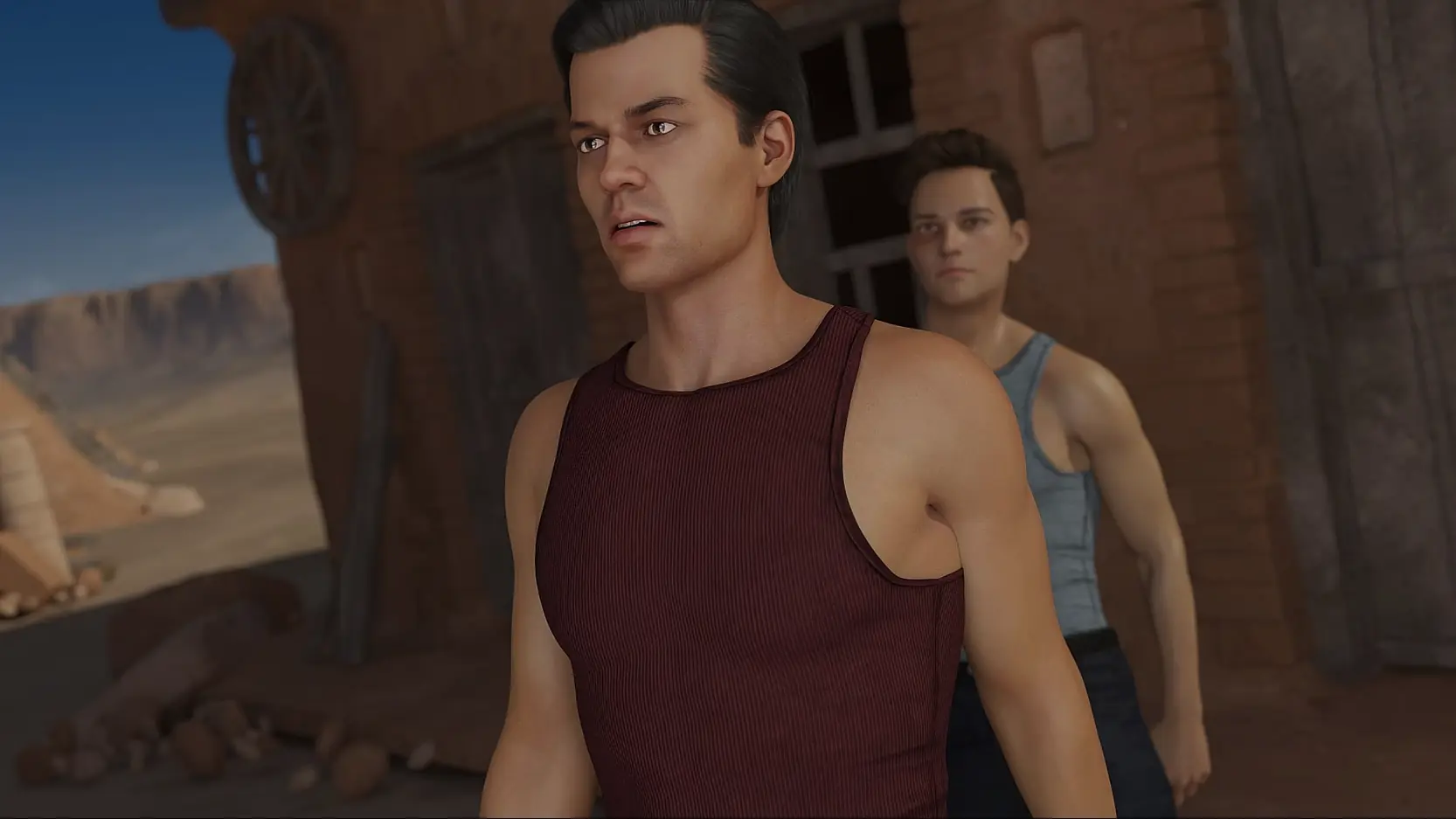 You play as an attractive young man, looking for greed and opportunity in a small village with some others in a zombie apocalypse in Ancient Egypt.