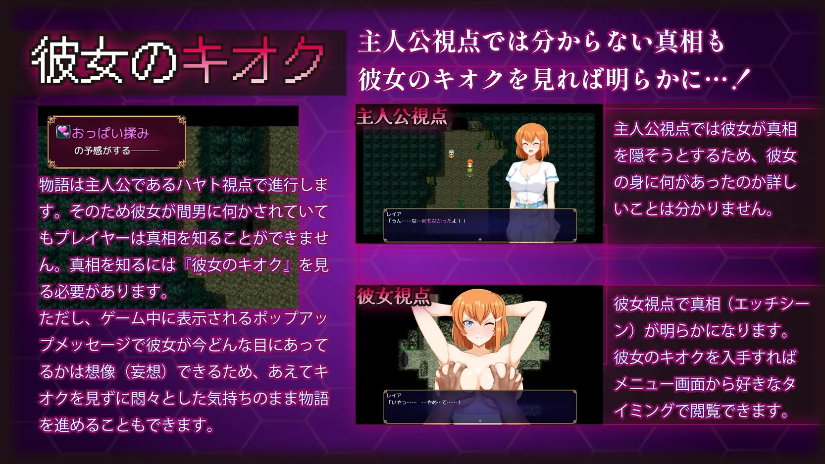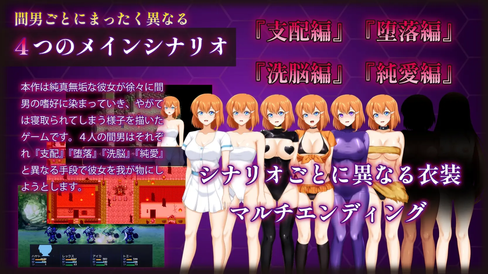 Set in the Kingdom of North Aura, with its strict class system, this is a classic childhood friend cuckold RPG in which your beloved girlfriend is taken away by another man!
