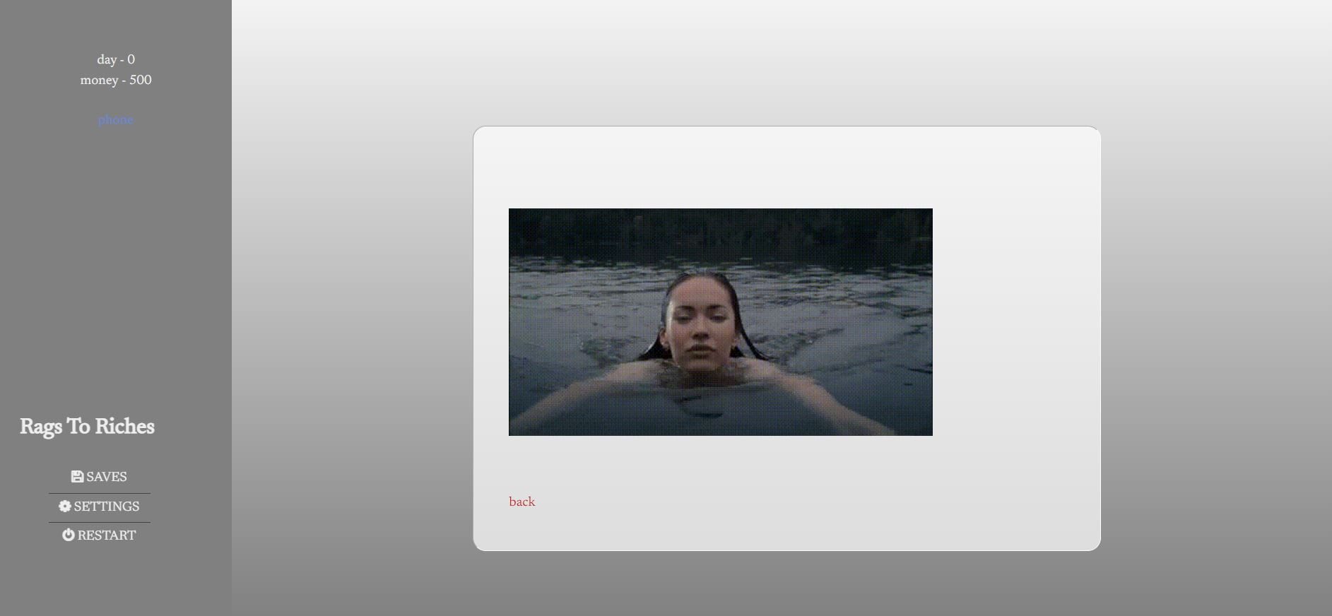 About The Game: Rags to riches is a porn game made on HTML game engine. This game is rated M and meant for adults with explicit contents and strong language. It is advised to read the tags to get an idea about the game. The current available version is v.Rags to riches. THe contents of the game is Uncensored. Rags to riches is developed and distributed by Sinichi, Tylerdipres, Please support Sinichi, Tylerdipres if want the development of Rags to riches game going or want to see more new games from them in future. The download links are crawled and gathered from various public sites. We do not host/modify or alter the contents. The uploader is responsible for the DMCA.