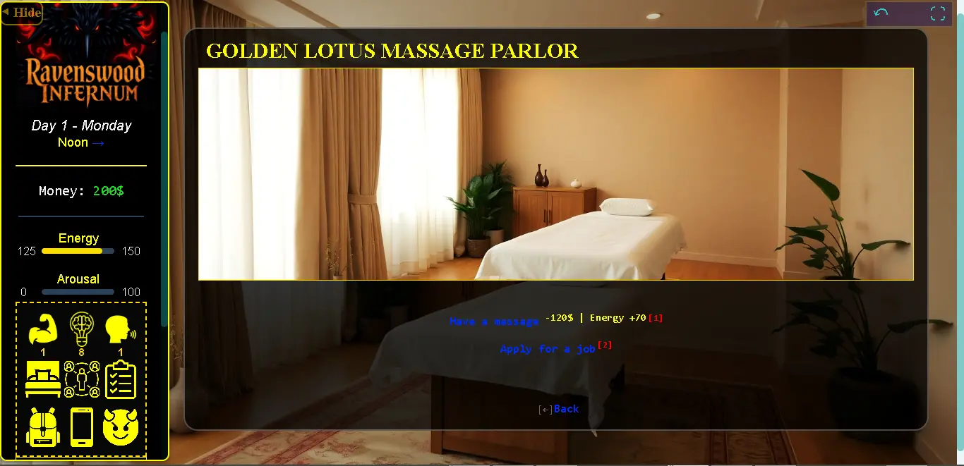 About The Game: Ravenswood Infernum is a porn game made on HTML game engine. This game is rated M and meant for adults with explicit contents and strong language. It is advised to read the tags to get an idea about the game. The current available version is v.Ravenswood Infernum. THe contents of the game is Uncensored. Ravenswood Infernum is developed and distributed by MrDummer, Please support MrDummer if want the development of Ravenswood Infernum game going or want to see more new games from them in future. The download links are crawled and gathered from various public sites. We do not host/modify or alter the contents. The uploader is responsible for the DMCA.