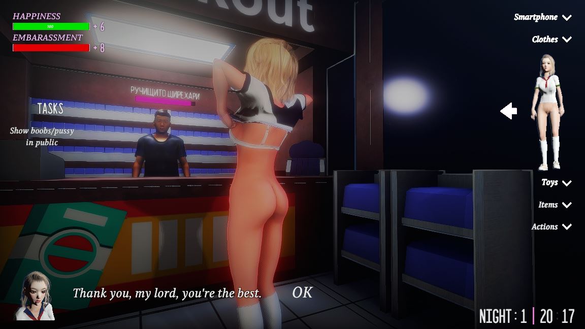 In this game you control an 18-year-old Japanese schoolgirl who loves exhibitionism, s