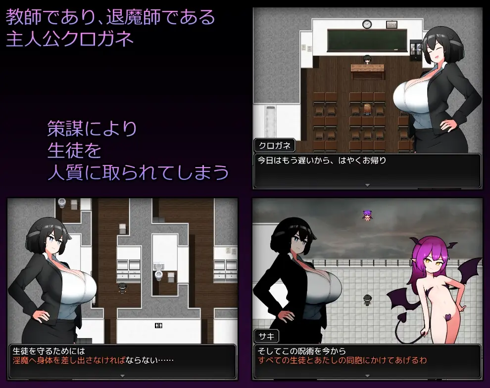 Summary: The main character, Kurogane works as a teacher, in the back, as an exorcist, she fights against the invaders “Inma” of the other world. She has been protecting people. however, due to the inma magic of the superior inma the souls of the students are connected with the lower grade inma. If Inma is hurt, students are also hurt…. Kurogane is forced to obey the inma、 You are forced to choose to offer your body as ”bait”…… Or to fight them and end without any sex acts.