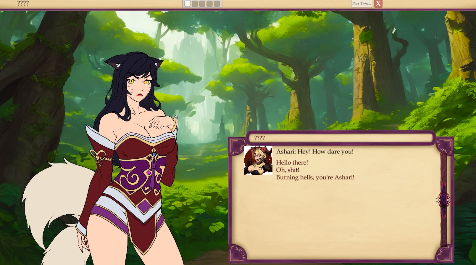 - Meeting Ashari! After getting the drop on her in the woods, learn a little bit about how you got there and the insatiable attraction the ladies will feel toward you. She'll have something to say about herself and is more than happy to indulge you.