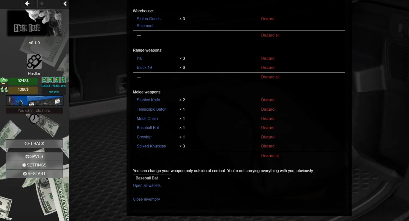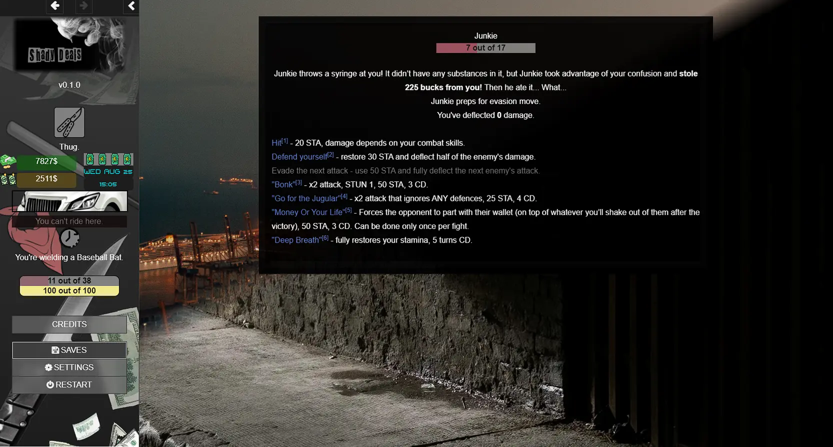 Shady Deals's latest build v.0.1.0 is available in Windows, MacOS, Linux platforms and currently Ongoing. We last updated this game in March 29, 2025.
