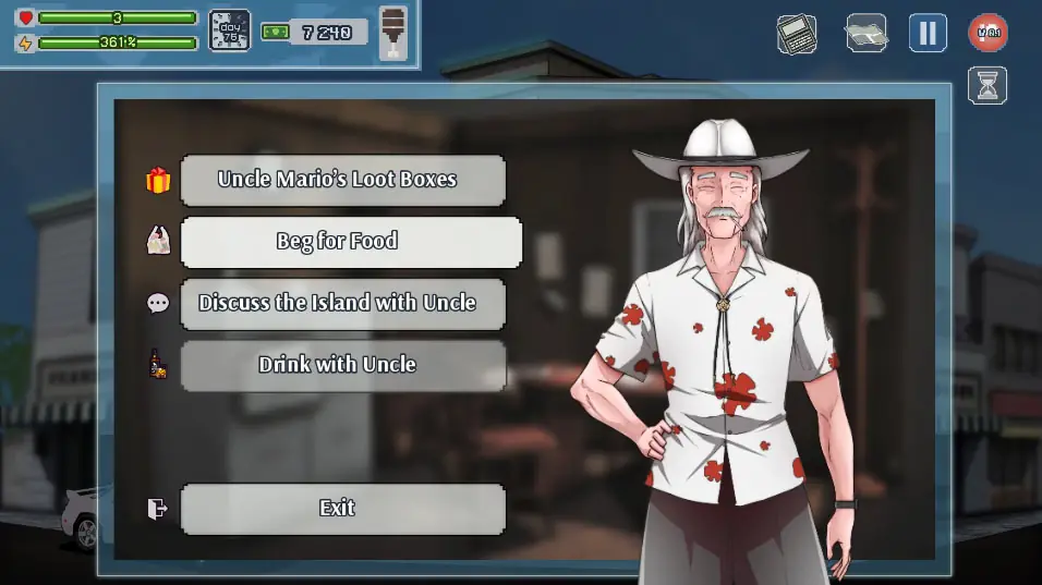 Changes - Easy Mode now grants +5 Intellect at the start of the game. - The cost of Doctors has been significantly reduced. - Card game stakes are now 50 for the first level, 50 for the second, and 100 for the third; progression is also much easier. - Appliance prices are lower (Refrigerator $3,000; TV $7,000). - Uncle’s loot boxes have been fixed and will now bring in less money. - Qualification levels are cheaper. - Added on-click explanations in some menu tabs (Text Speed, Skip Text). - Added Chinese (beta). It’s still rough and missing in many places, but the story campaign can be read with it. Fixes - Fixed the “Level 5 qualification” bug. - Fixed a bug where the shop could open too early. - Minor bug fixes.
