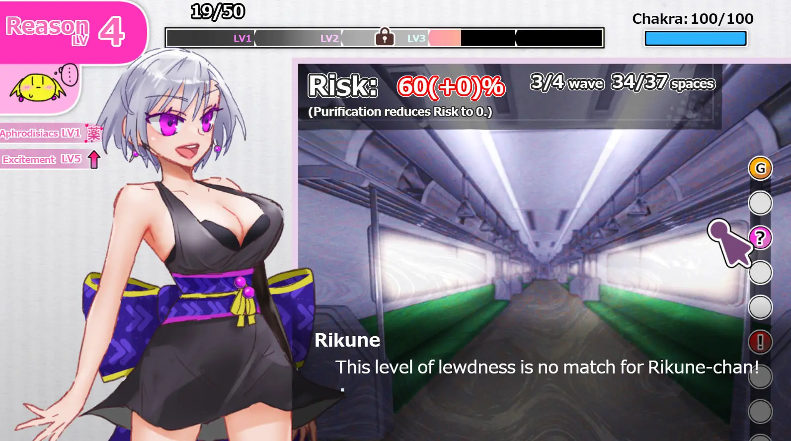 This game depicts the heroine Rikune’s descent into pleasure! The focus is lewd acts with other people, but many of the scenarios include additional elements, such as invisible tentacles, parasitic demons, and lewd crests.