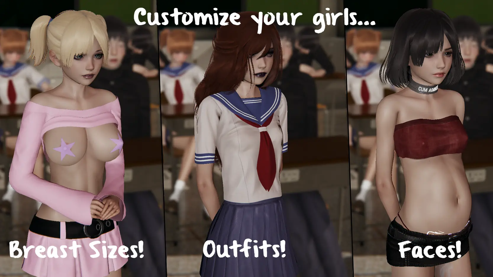 Decide what kind of character you want to play, and how you dress! A fully customizable experience, where you will decide everything about your character! An ever evolving wardrobe! Every piece of clothing, accessory, hairstyle, and color carries over to every scene with different positions! Including Over 780 + hairstyle combinations, countless accessories/clothing combo’s! All fully color customizable!