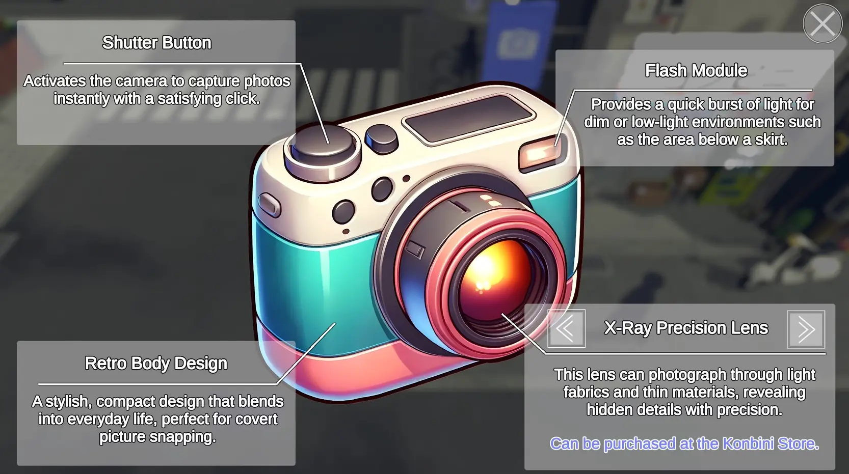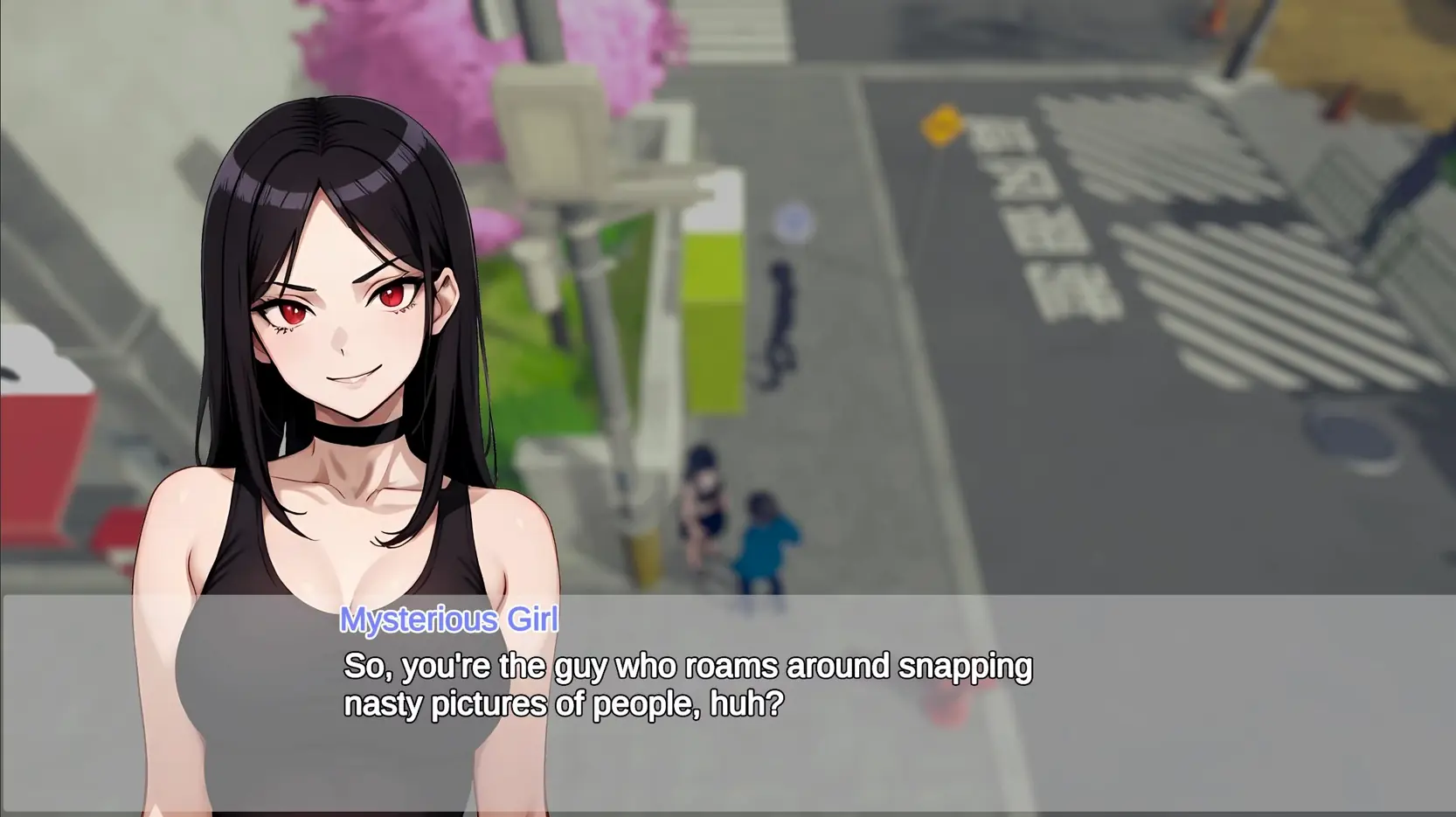 A 3D open world hentai RPG where you can explore a part of Tokyo and make secret upskirt pictures in order to earn cash for upgrades to your camera. Panty shots are not