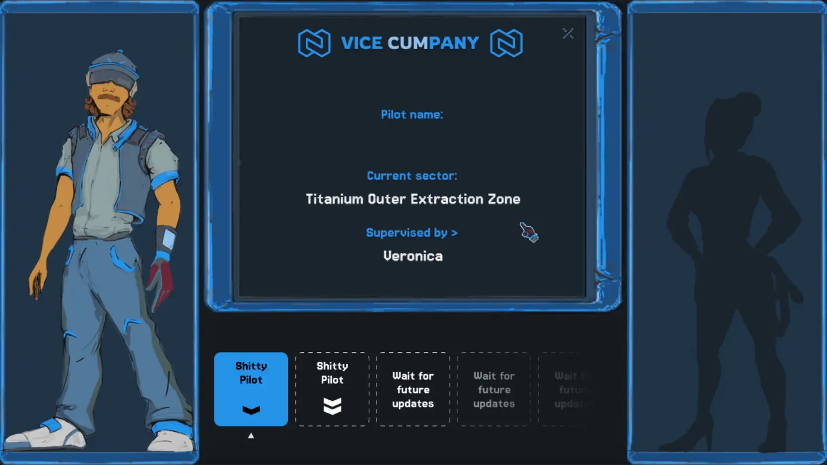 Step into the cockpit of Space Cumvoy, where you—a lowly pilot for Vice Cumpany—have nothing but your wits, a battered ship, and a galaxy full of… opportunities.