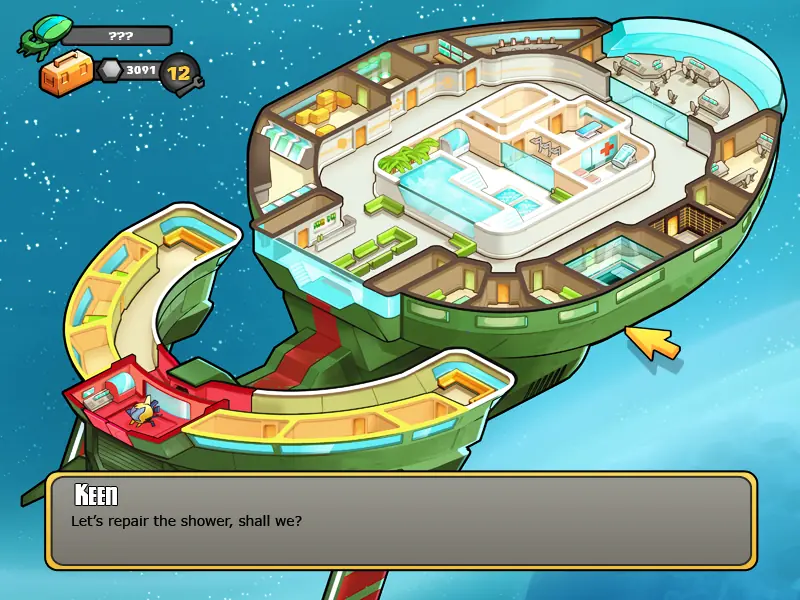 In this game you play as Keen; a young mechanic that just landed his first job on a ‘Rescue & Relax’ Ship.