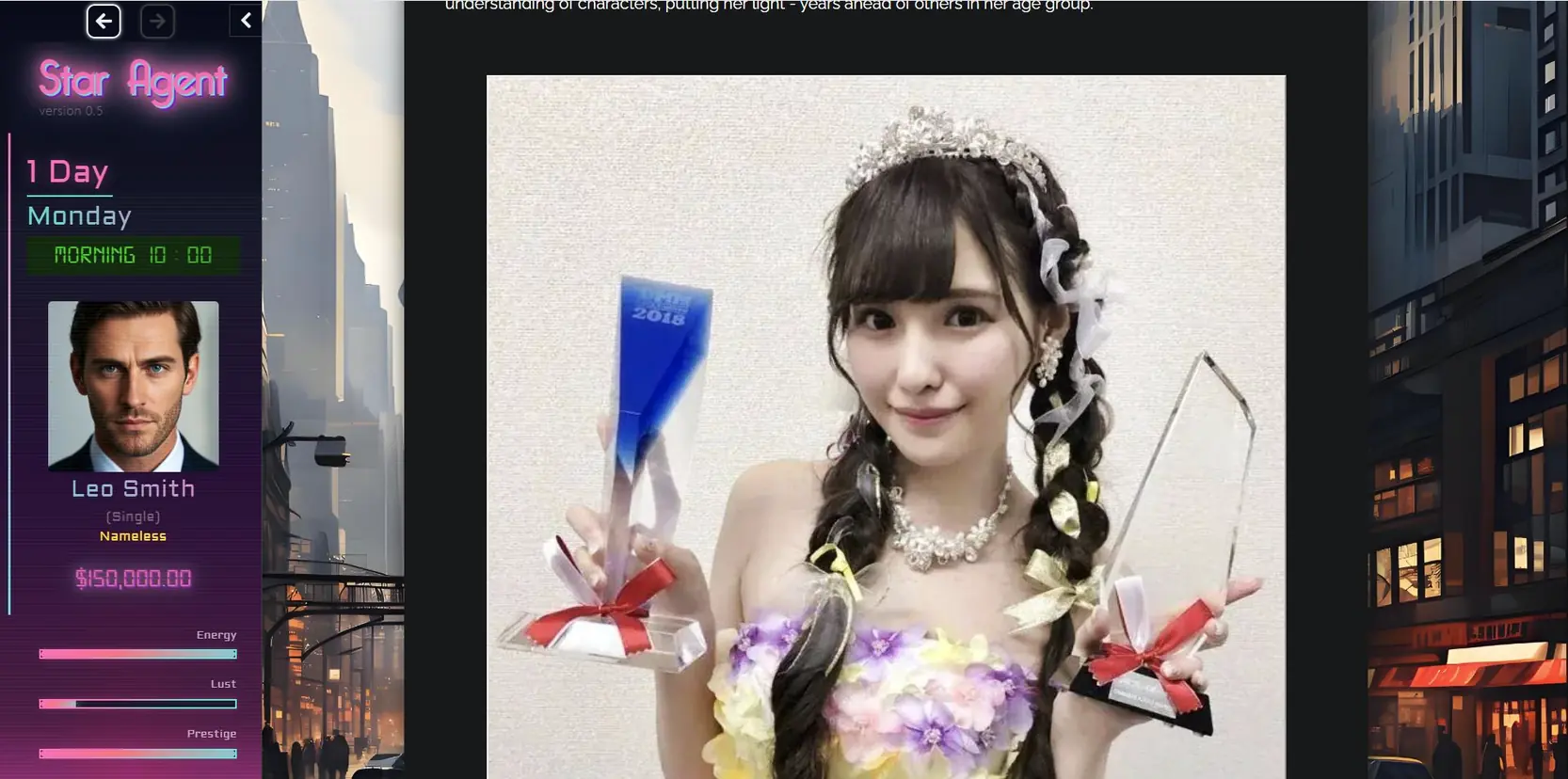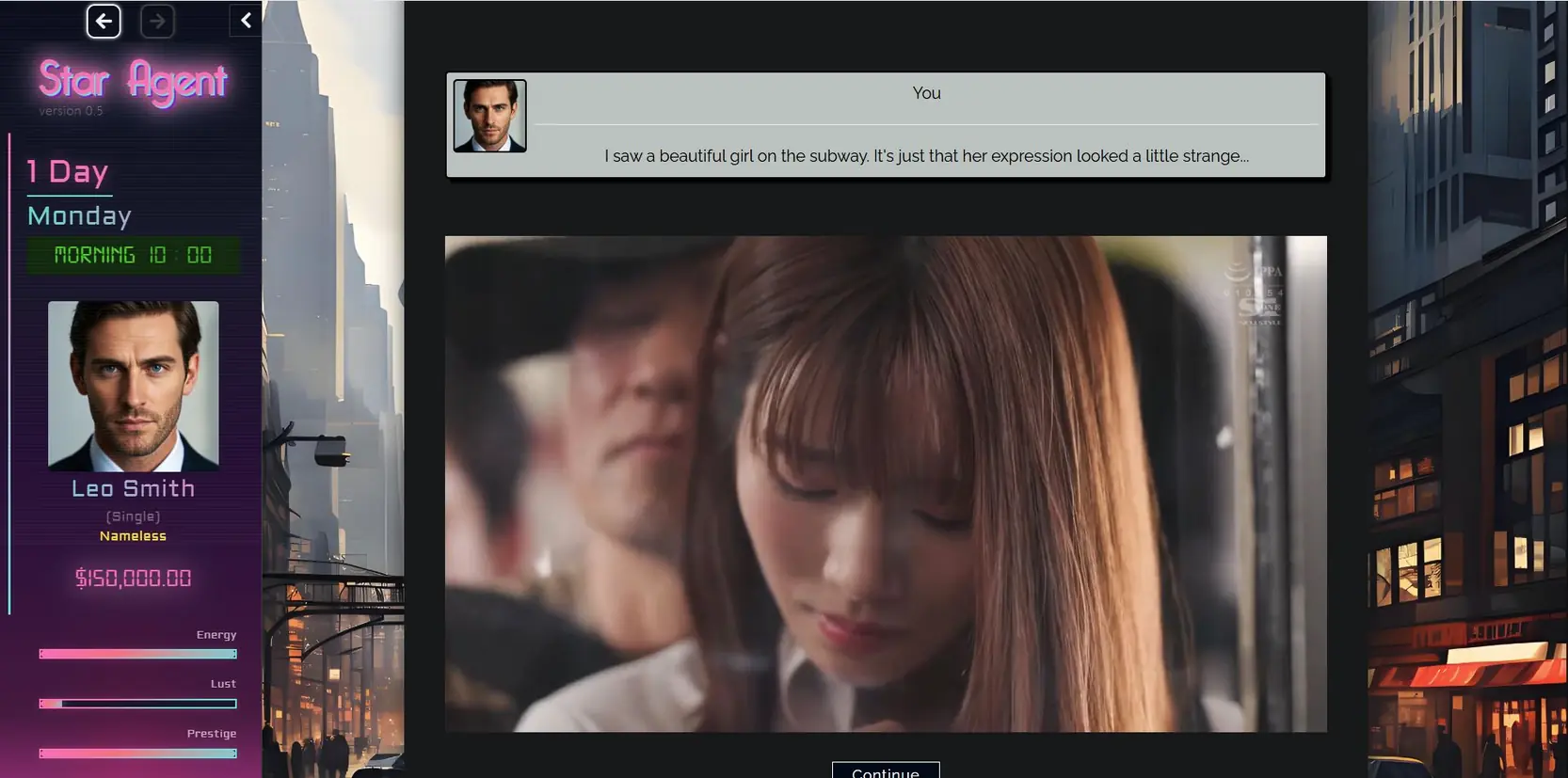 Star Agent is a visual novel game where you step into the shoes of a struggling entertainment agent. Armed with a mysterious pocket watch that reveals affection levels and hidden thoughts, you’ll scout promising talents with acting aspirations. Navigate high stakes conflicts against ruthless gang leaders and their mistresses, solve puzzles, make pivotal choices, and cultivate relationships. Can you expose the dark secrets of the entertainment industry and forge your own path to success.