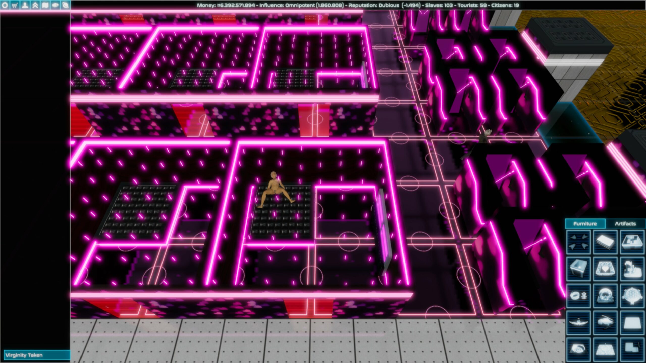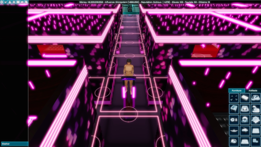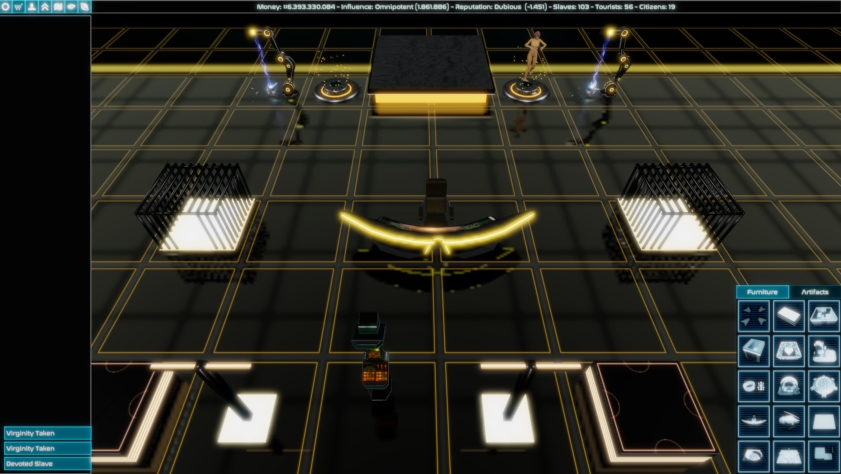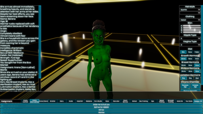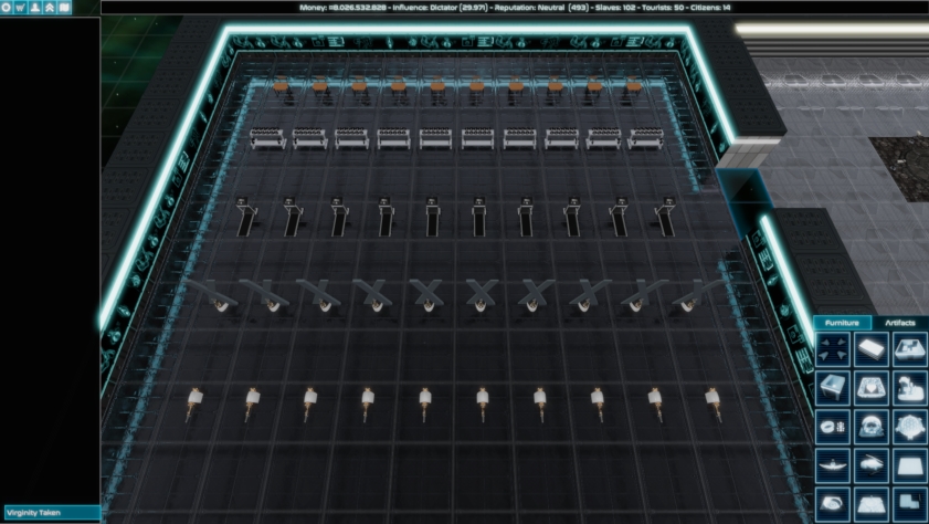 This is a game about slavery and war in an age without rules of engagement. As a player, you will have the option to commit several crimes against humanity. If that’s not your cup of tea (sexually or otherwise), I respect your moral luck, but you will likely find everything about this game horrifying. That said, all characters are over 18, and I don’t think anyone should do anything described in this game in real life (except maybe for sitting at a desk all the time, but even that’s not good for your back). Stationmaster is a base-building game with a 4X space strategy component and a heavy focus on sexual slavery. You are the owner of a space station, and build it from a small-time floating brothel to the center of a galactic empire.