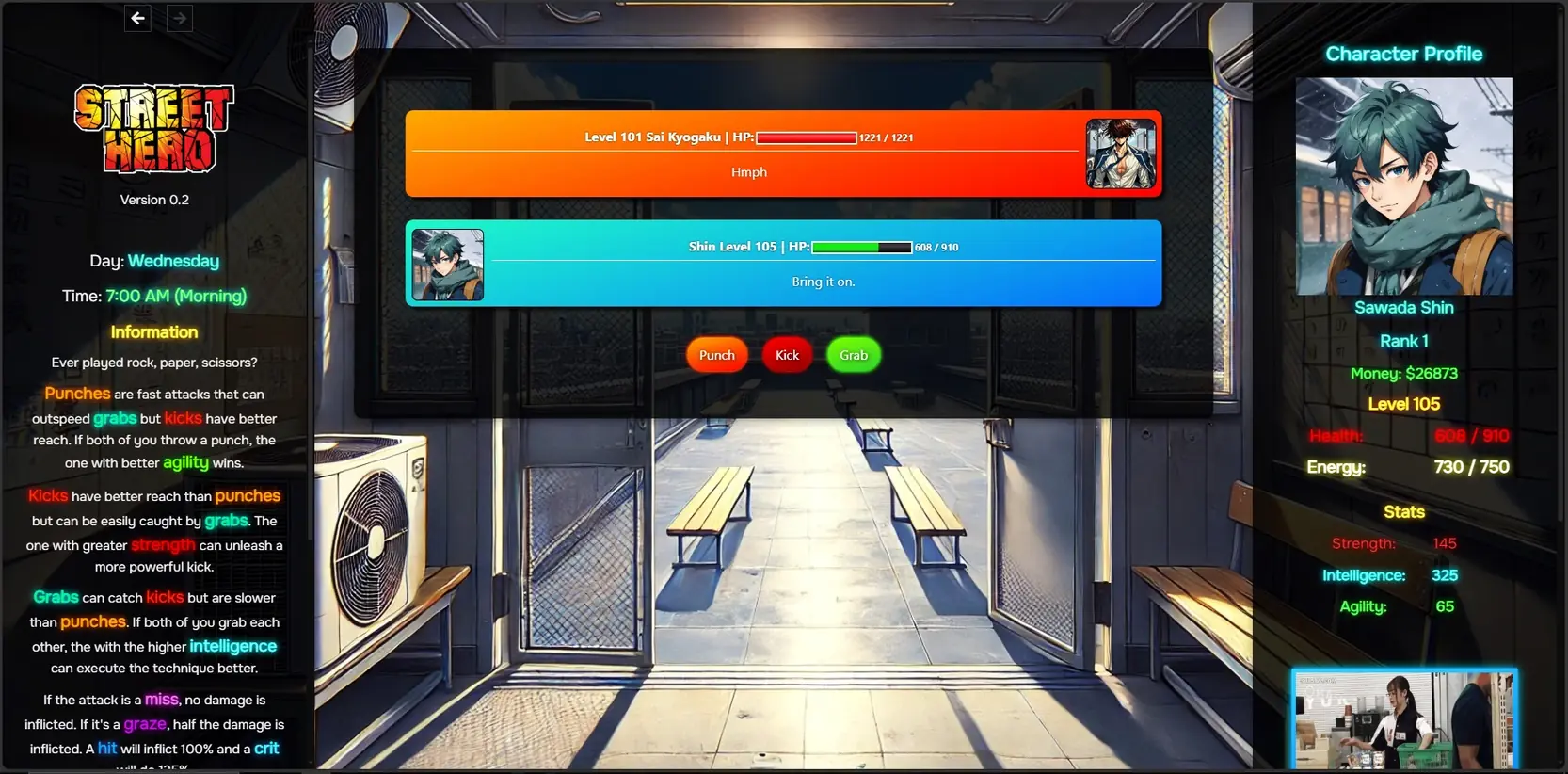 Street Hero's latest build v.0.7a is available in Windows, MacOS, Linux platforms and currently Ongoing. We last updated this game in August 31, 2025.