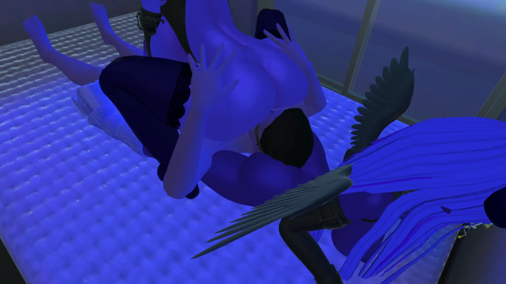 Adult scenes display the player character’s full body. The player character in the game also wears VR gear,