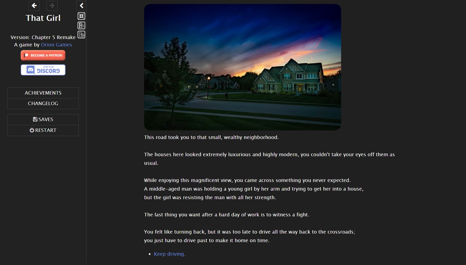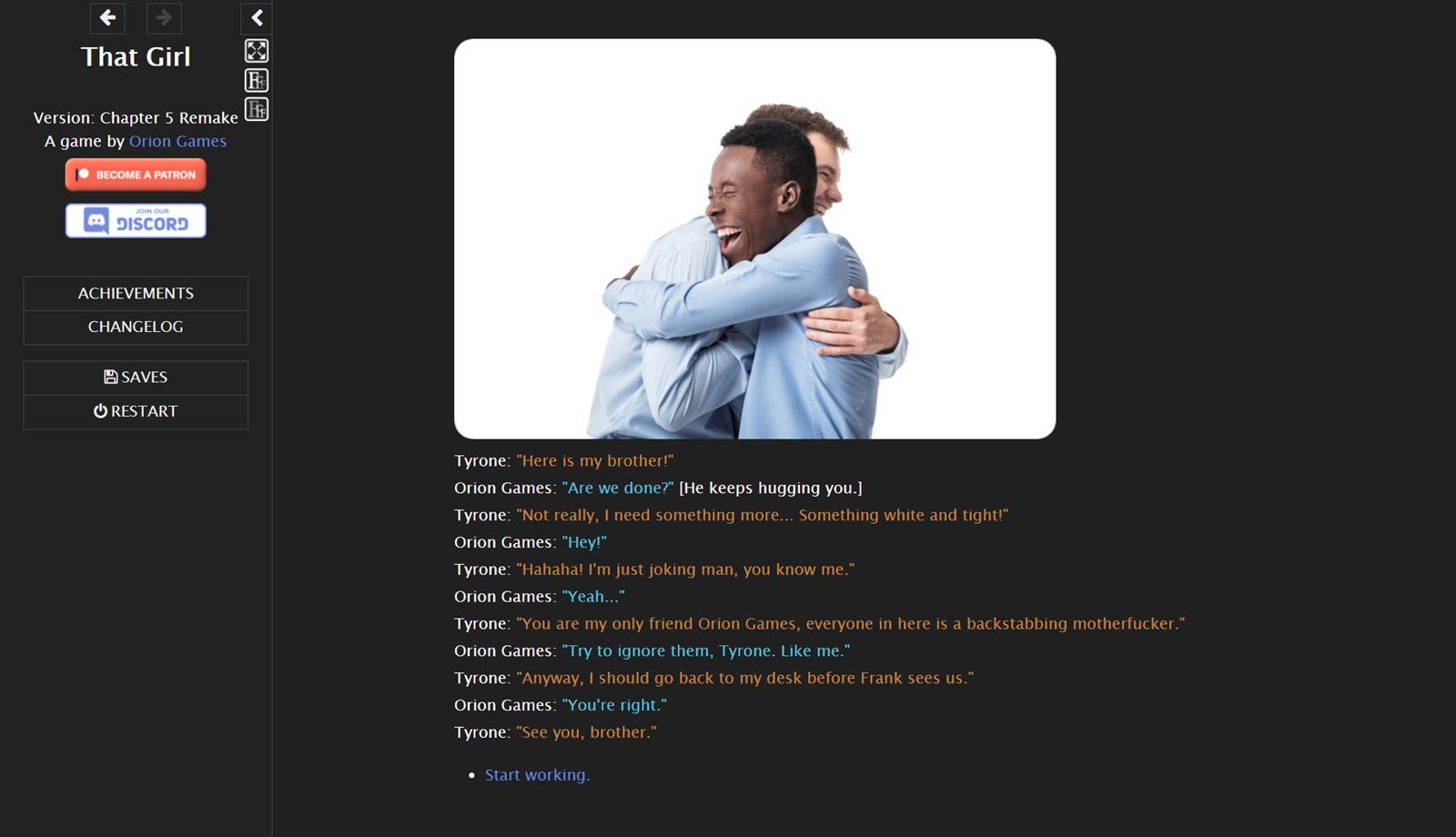 About The Game: That Girl is a porn game made on HTML game engine. This game is rated M and meant for adults with explicit contents and strong language. It is advised to read the tags to get an idea about the game. The current available version is v.That Girl. THe contents of the game is Uncensored. That Girl is developed and distributed by Orion Games, Please support Orion Games if want the development of That Girl game going or want to see more new games from them in future. The download links are crawled and gathered from various public sites. We do not host/modify or alter the contents. The uploader is responsible for the DMCA.