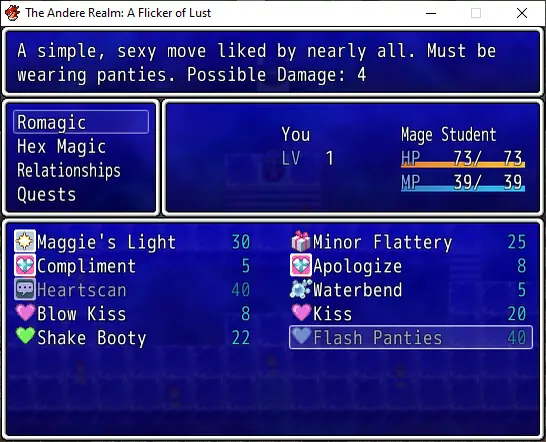 About The Game: The Andere Realm A Flicker of Lust is a porn game made on RPGM game engine. This game is rated M and meant for adults with explicit contents and strong language. It is advised to read the tags to get an idea about the game. The current available version is v.The Andere Realm A Flicker of Lust. THe contents of the game is Uncensored. The Andere Realm A Flicker of Lust is developed and distributed by MothOnMars, Please support MothOnMars if want the development of The Andere Realm A Flicker of Lust game going or want to see more new games from them in future. The download links are crawled and gathered from various public sites. We do not host/modify or alter the contents. The uploader is responsible for the DMCA.
