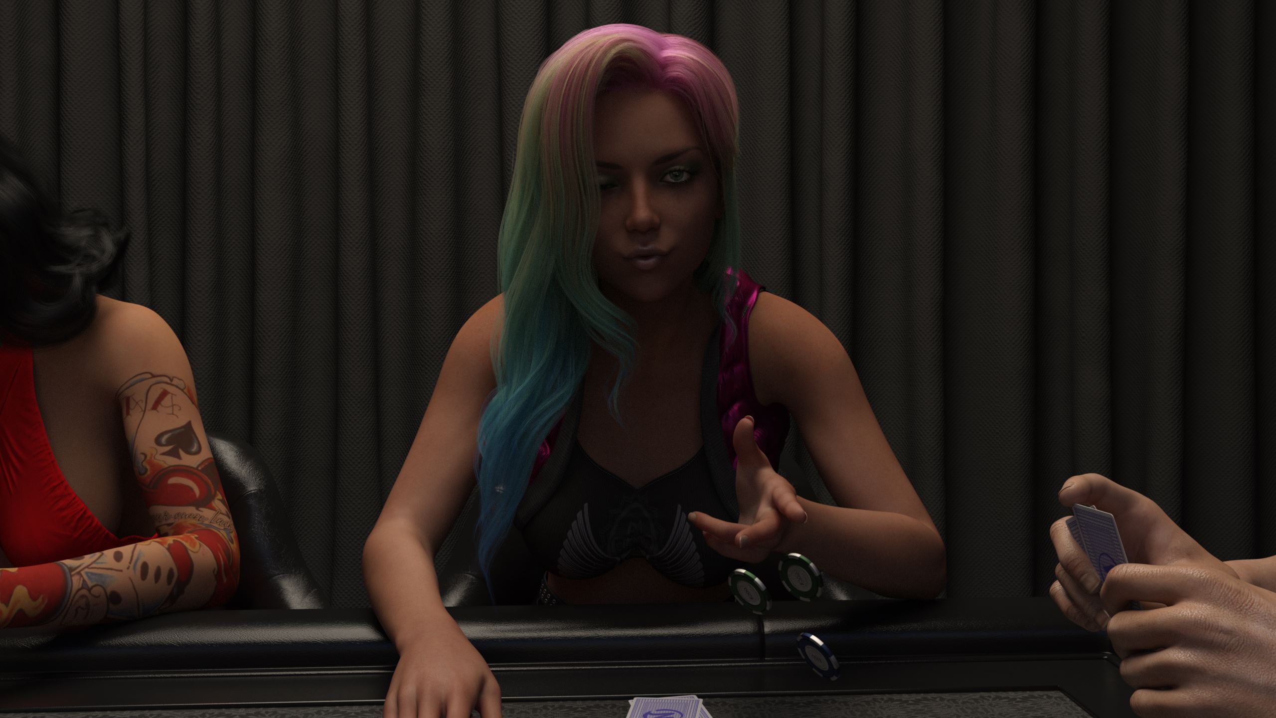 You play as Rob, a young college student struggling to get by. His family is poor and they seem to not care about him after a strange event between his parents a few years back. Rob accepts the fact that his mother and father don’t really acknowledge him anymore and give all their love to his sister. The story picks up when Rob accepts an invitation to a poker game, where the events change his life forever.