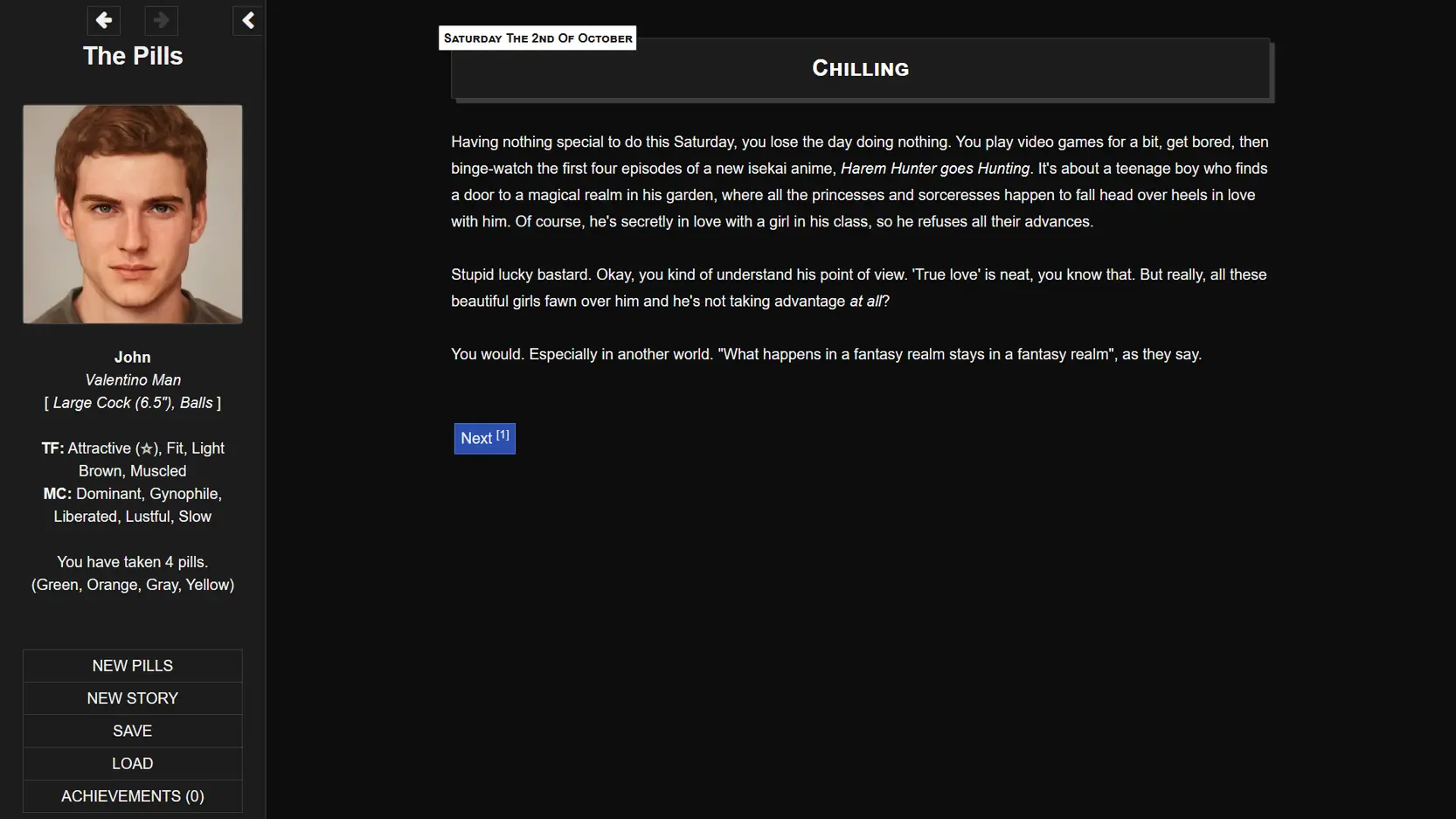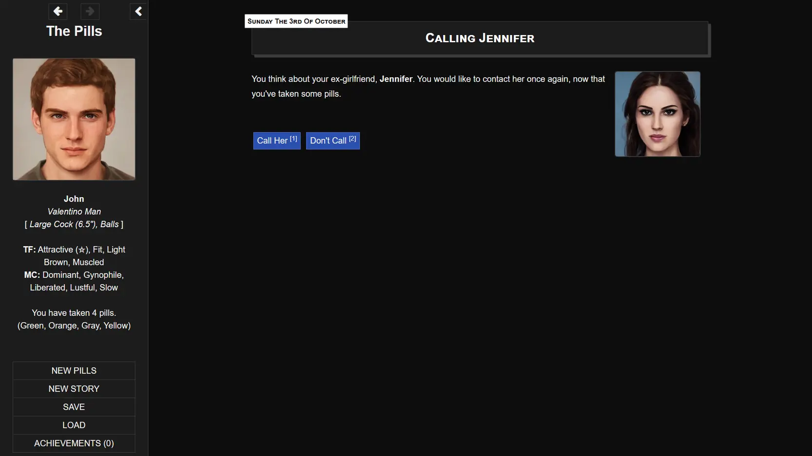 About The Game: The Pills is a porn game made on HTML game engine. This game is rated M and meant for adults with explicit contents and strong language. It is advised to read the tags to get an idea about the game. The current available version is v.The Pills. THe contents of the game is Uncensored. The Pills is developed and distributed by MChapeau, Please support MChapeau if want the development of The Pills game going or want to see more new games from them in future. The download links are crawled and gathered from various public sites. We do not host/modify or alter the contents. The uploader is responsible for the DMCA.