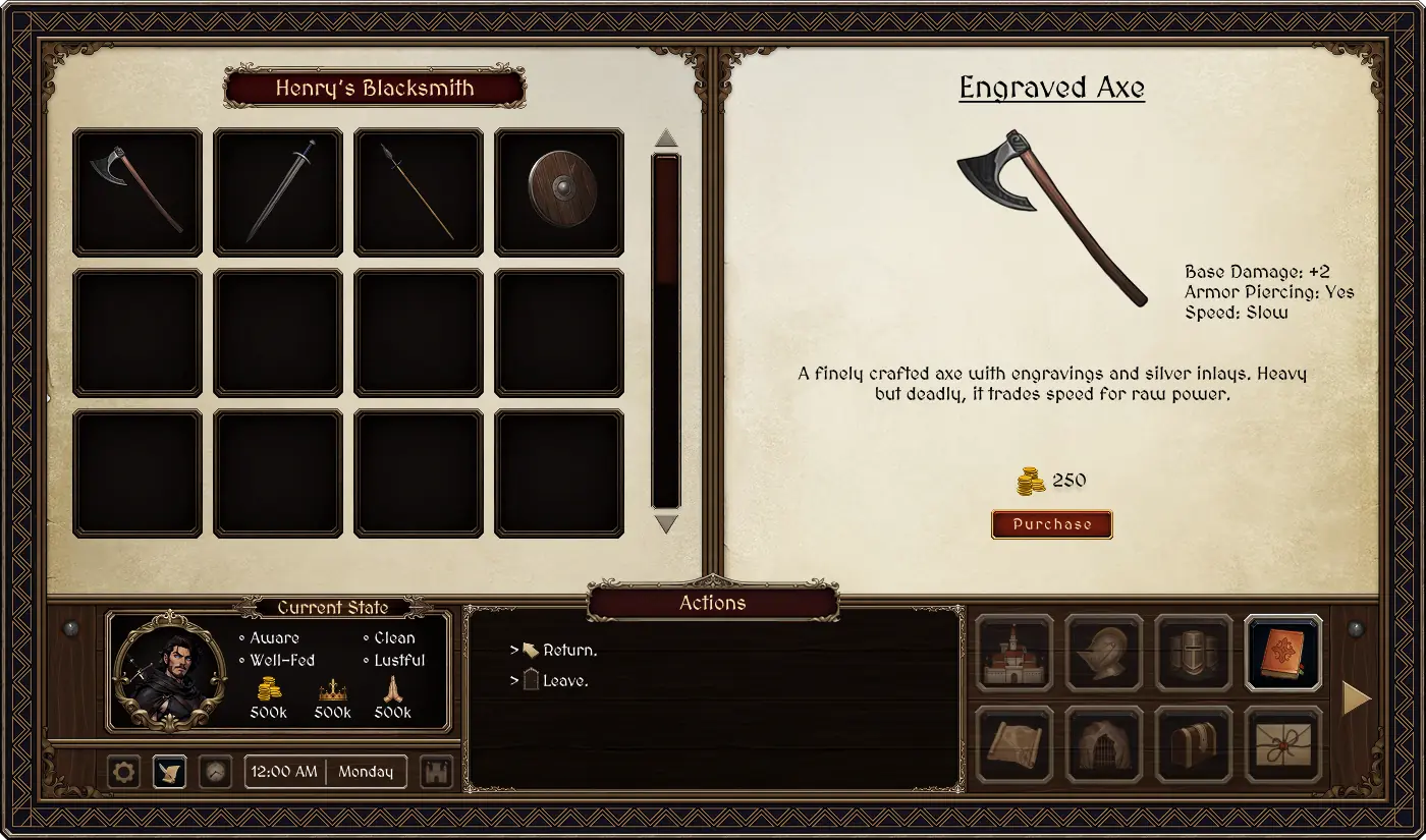 The World of Bemoria is a mature, open-world RPG set in a fractured medieval fantasy realm scarred by two centuries of relentless war. Once united by trade and fragile alliances, the lands have splintered into rival human kingdoms, stubborn dwarven holds, proud elven dominions, and bloodthirsty orc clans, all vying for survival and dominance in a world without peace. In this brutal age, ambition and betrayal weigh as heavily as steel, and every choice can shift the balance between ruin and rebirth. As the heir to a fallen lord, you must rebuild your inheritance, forge alliances or rivalries, and carve your legacy in a land where loyalty is fragile, war is constant, and survival is never guaranteed.