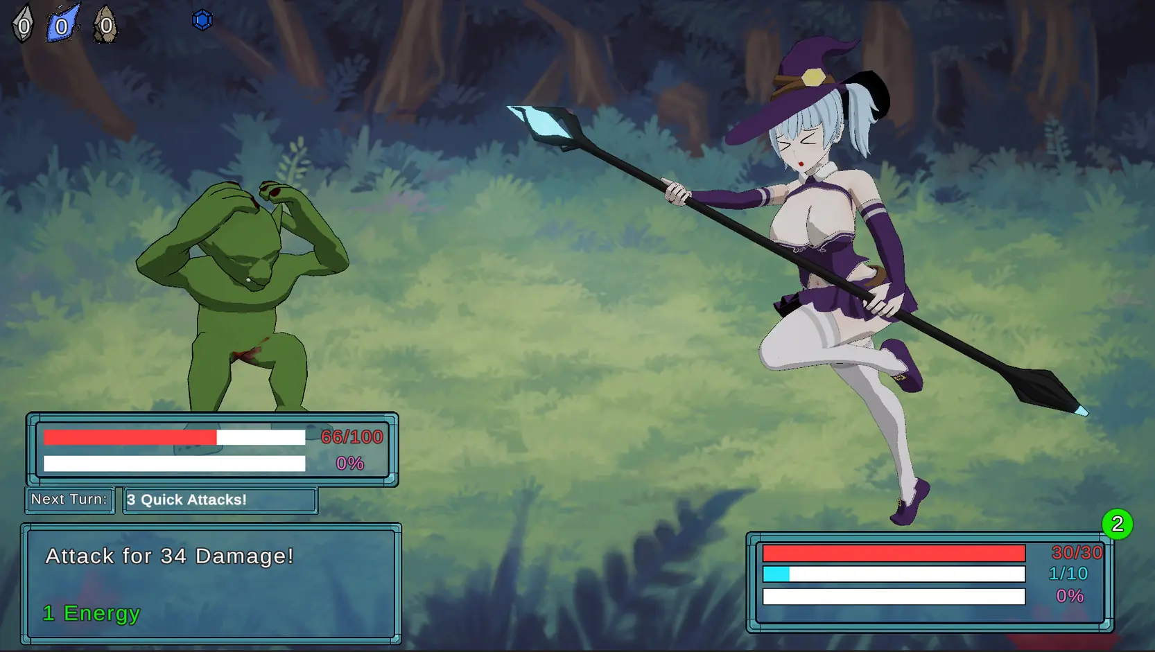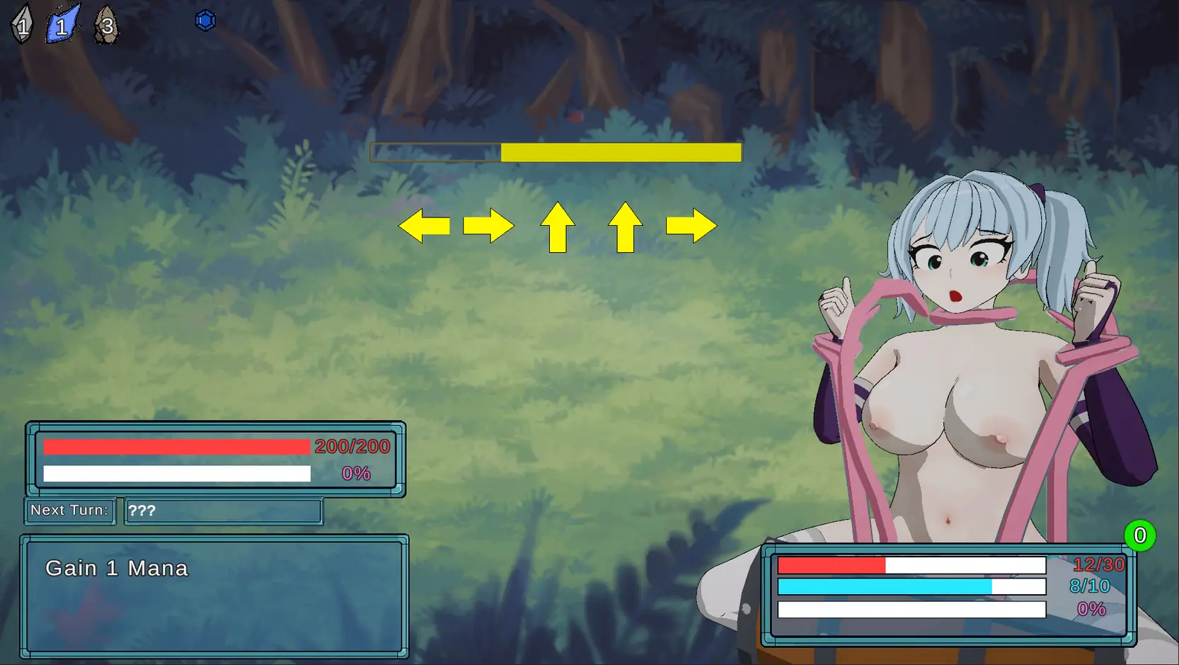 -The enemy will now preform 3 types of attacks, Heavy, Jump and quick. Lily will have to use her Lewd skills in order to disarm the enemy and raise their tension!