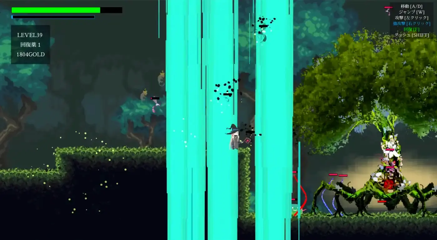 A 2D side-scrolling action game with simple controls. Iris is A hard-working girl who learned magic in the royal capital. Although she has excellent magical skills, she has little practical experience.