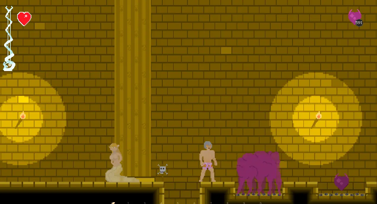 Monster girl themed sidescroller where you play as an overly courageous city guard. In this brief demo you go through different environments and fight off a number of evil monster girls.