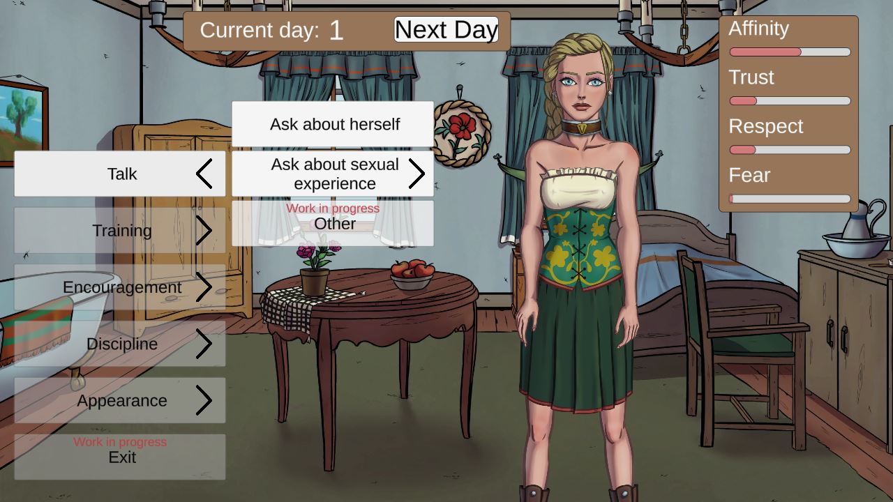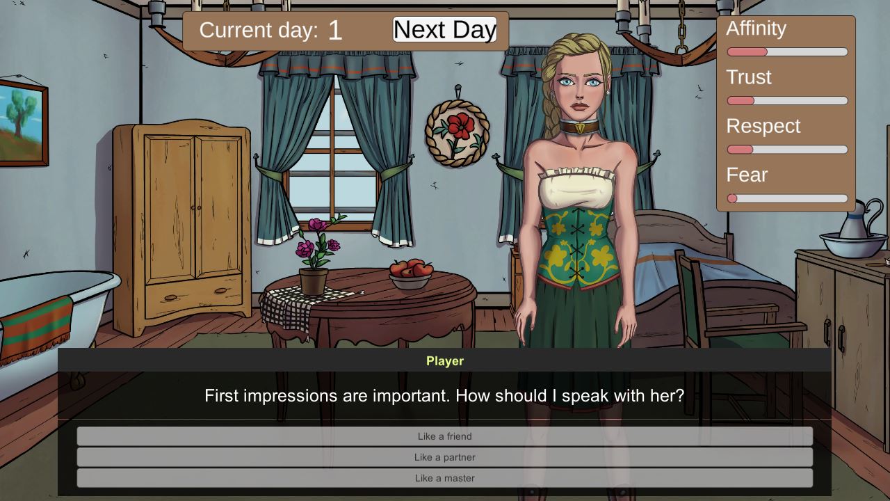 Take charge of several beautiful sex slaves in a fantasy world. Teach them how to please men and earn more coins. Climb the career ladder to be entrusted with serving VIP clients. Learn personal stories of your proteges, patrons and staff. Discover their secrets and complete quests.