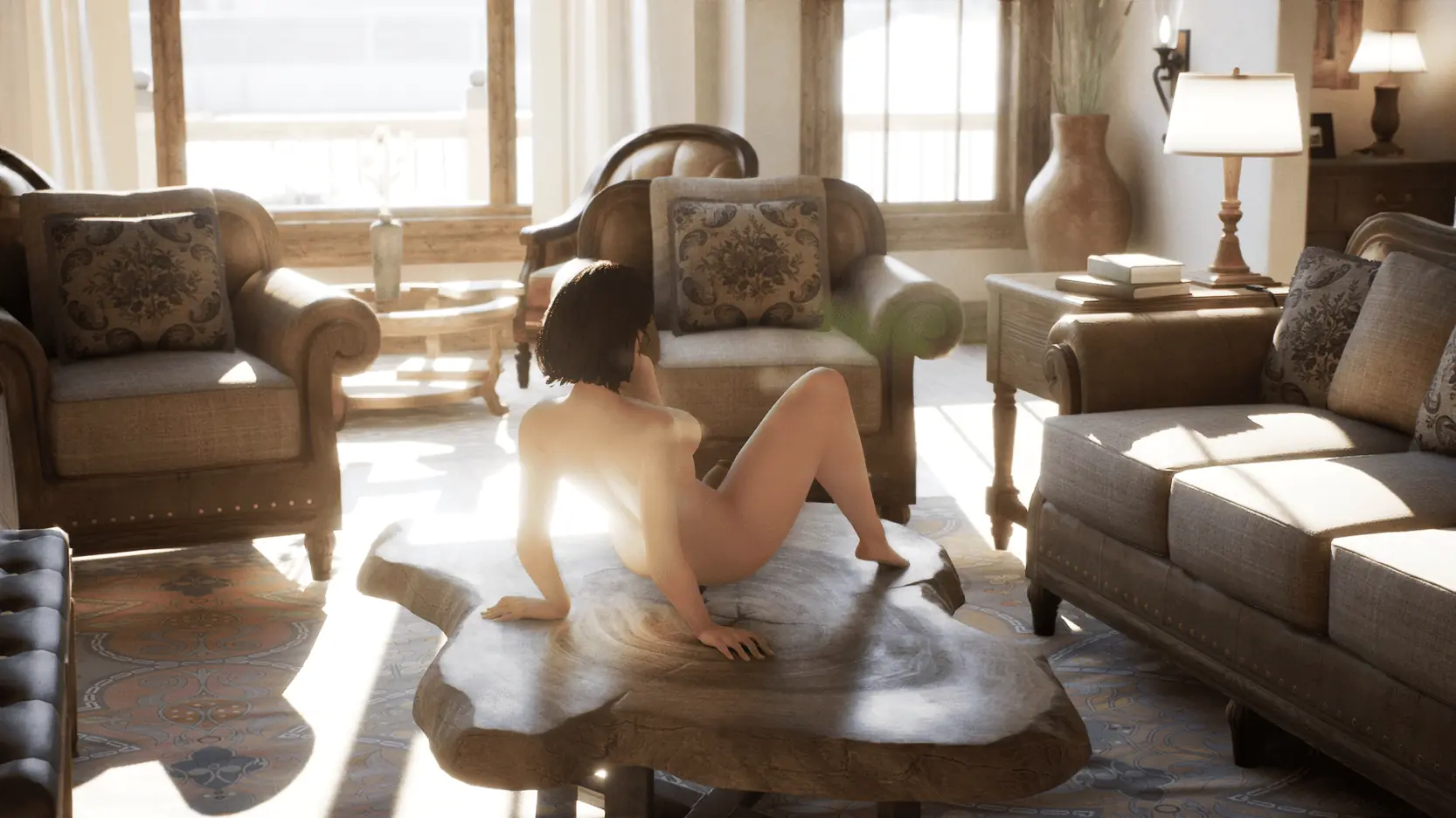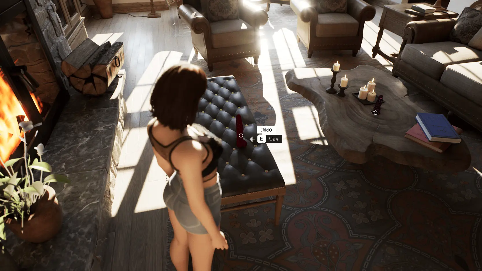 This house is your safe space. Move freely through every corner — from the living room to the bedroom — discovering a variety of erotic toys scattered around. Dildos of all shapes, sizes, and colors await your curiosity and boldness. Each one offers a unique sensual animation, carefully crafted to highlight the protagonist’s body and movements.