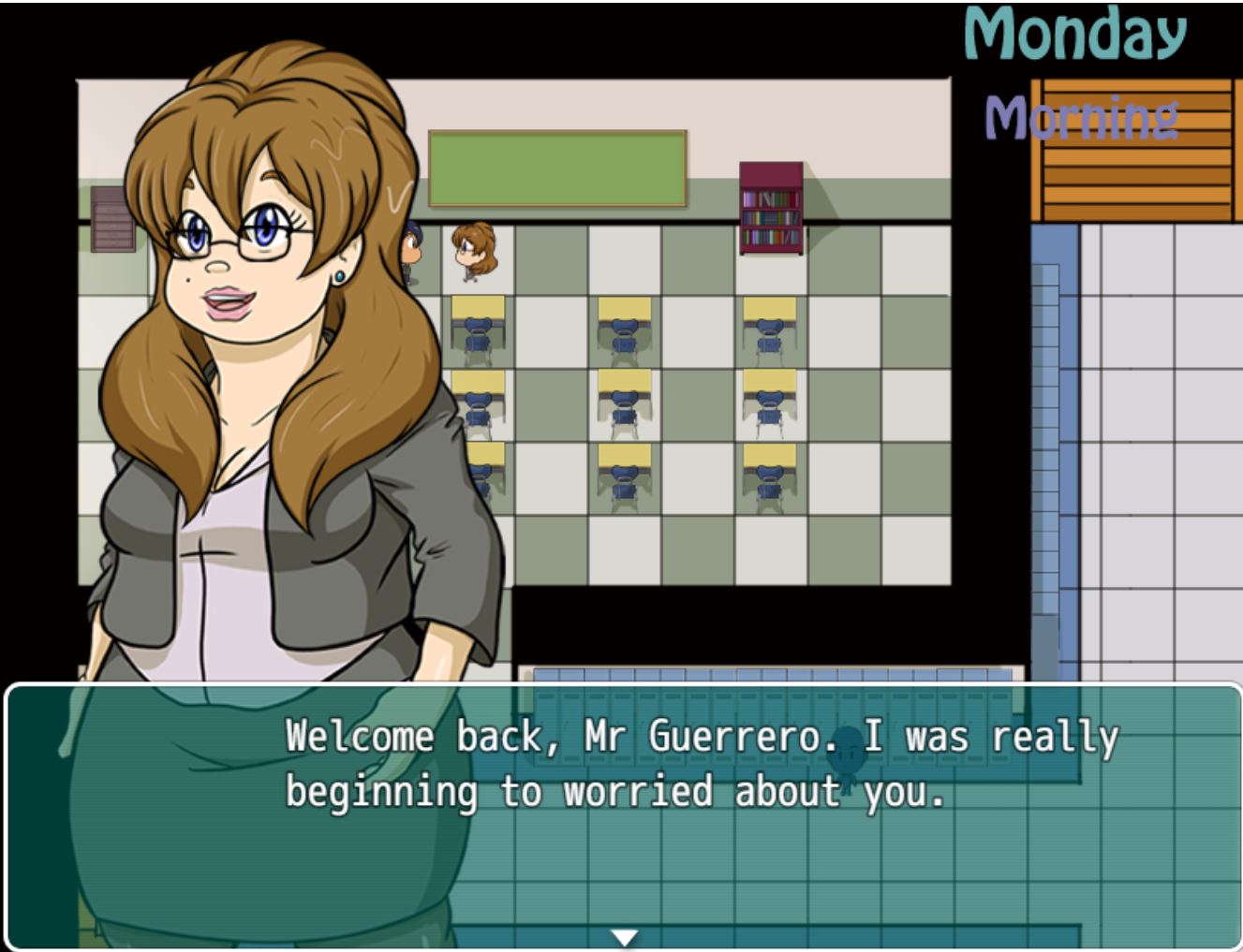 In “Virility Adventure” you’ll be playing as the young Protagonist Jaime (You can change that if you don’t like it.) Who’s life takes tragic turn. Now adjusting to his new life living with close friend of the family. Jaime must cut his way into the world while learning about love, passion and relationships along the way. All while something sinister is brewing behind the scene of the town of West Amorville.