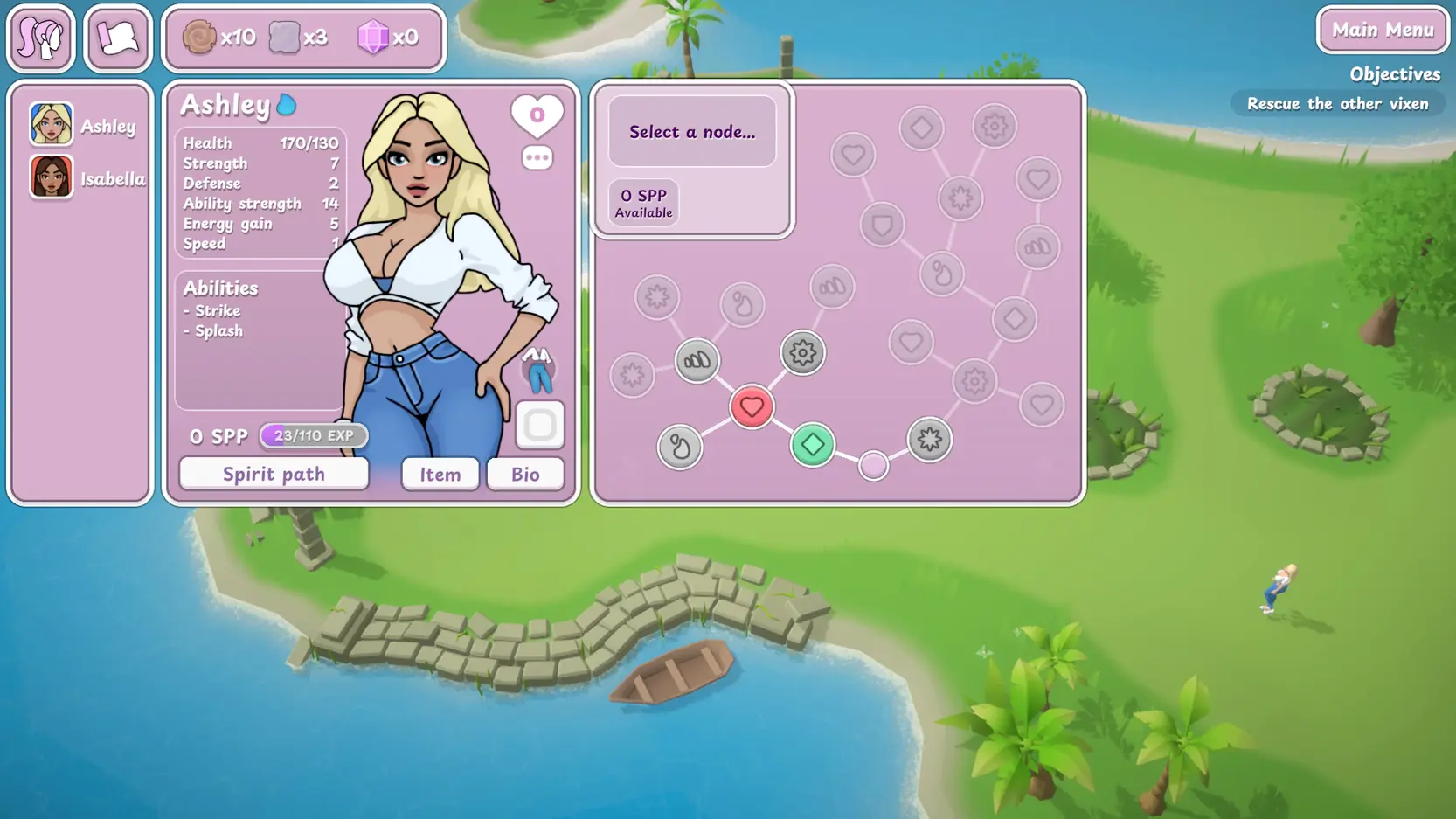 Develop your tropical island and fill it with stunning vixens! Fight the evil, yet surprisingly hot, invaders in JRPG fashion!