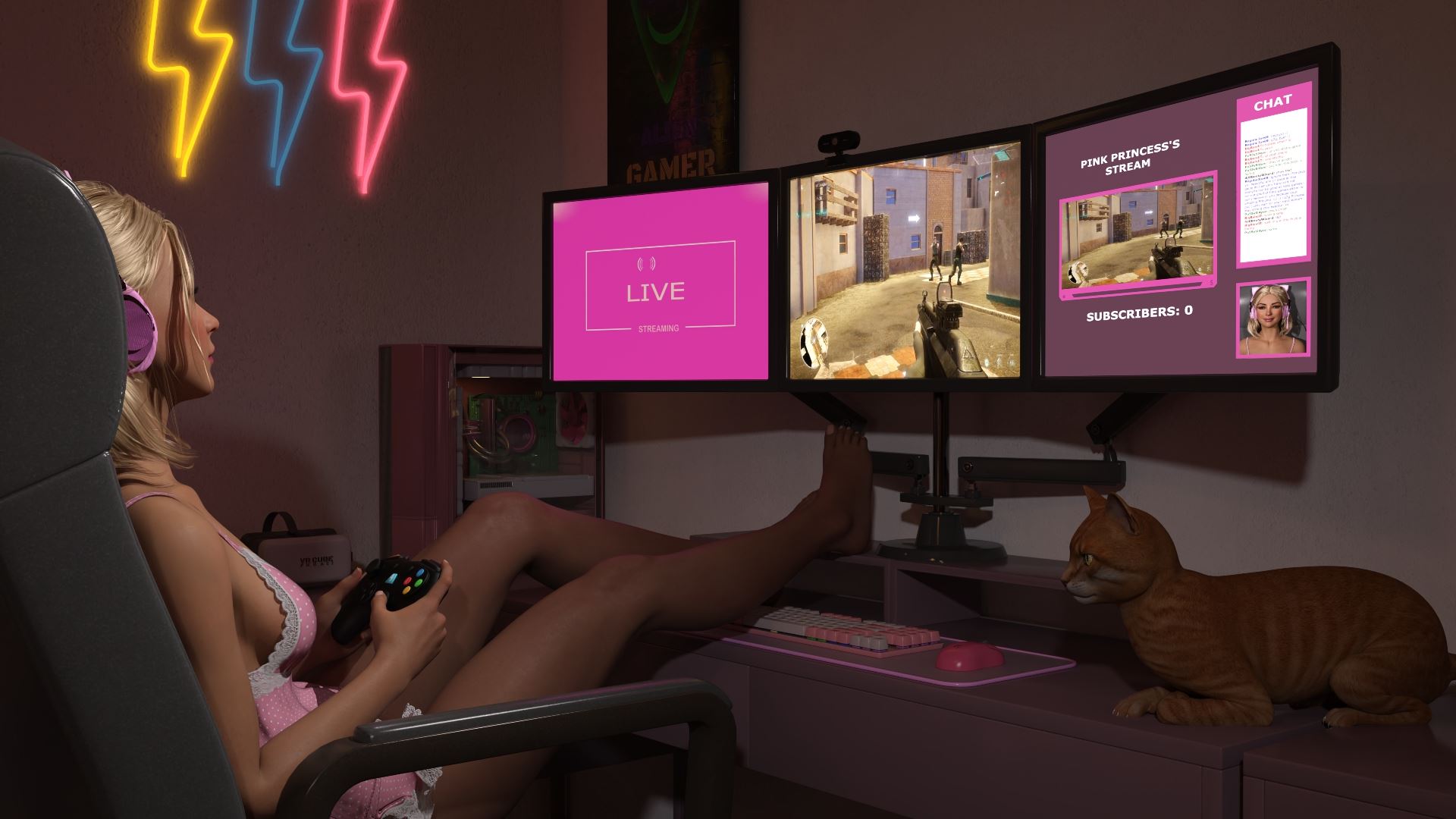 In this game you will play as an aspiring streamer and college student who discovers a strange CD titled “Watch Me”. Inquisitive and bored, you decide to load it onto your PC. A short film plays, which leaves you…. intrigued. You can’t forget the images you saw, and you find yourself changed. Can you discover the secrets of the “Watch Me” film? Can you balance being a college student with your new adventures? Can you build a streaming empire or will you fall to your new dark desires?”