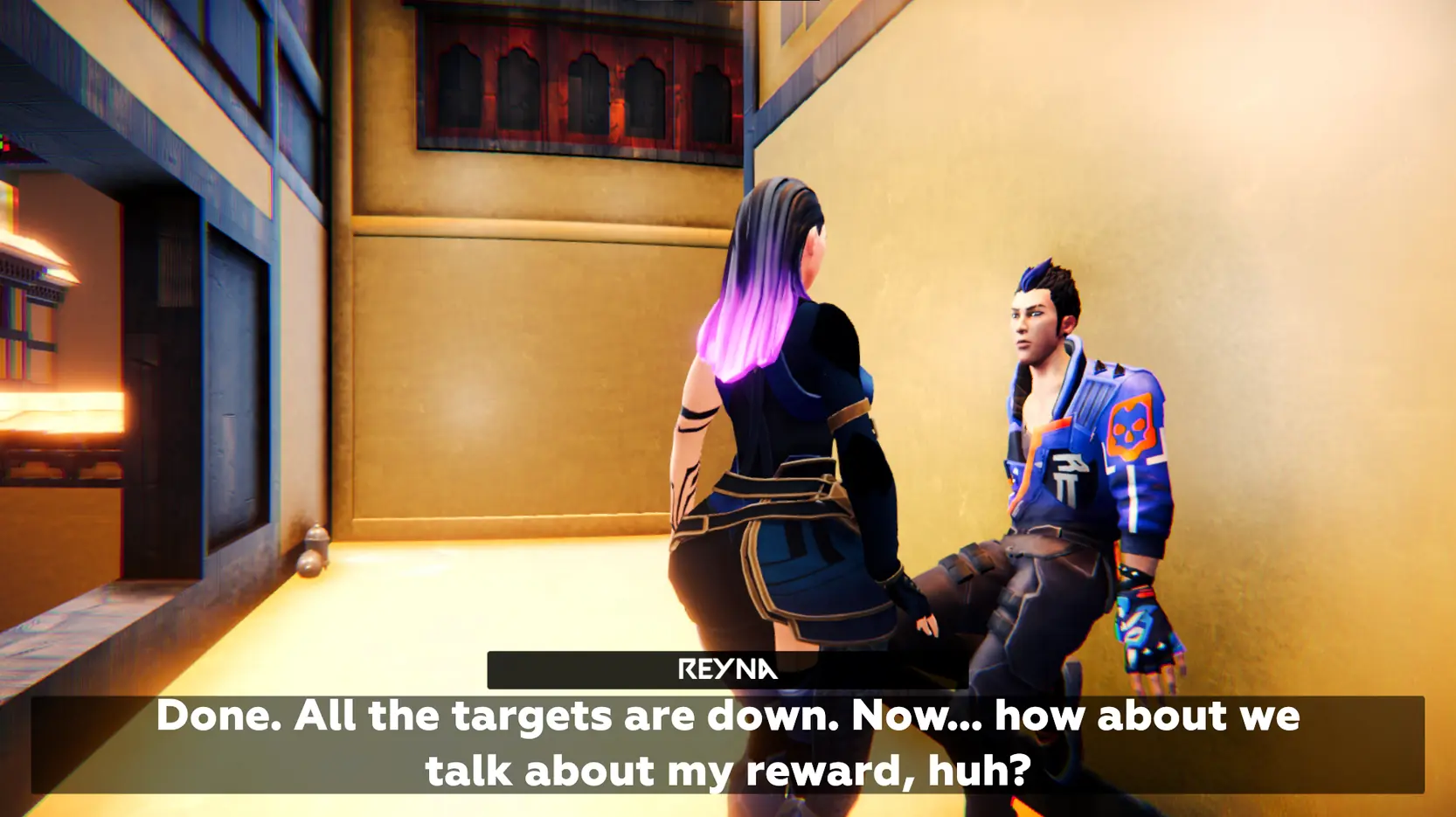 In this game, you play as Yoru, a rookie in your team. You’re being trained by Reyna, who promised you a reward for your progress. However, the reward turned out to be far better than you expected…​